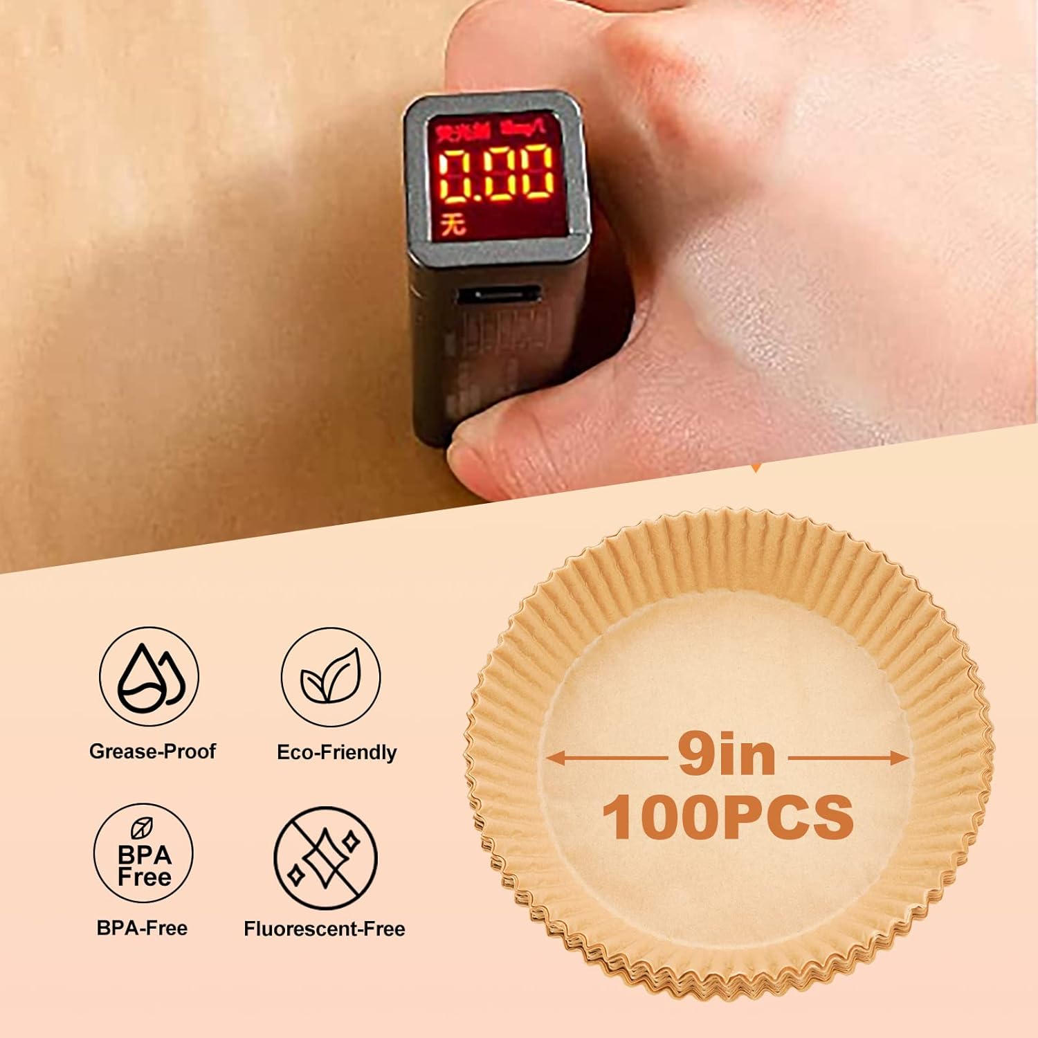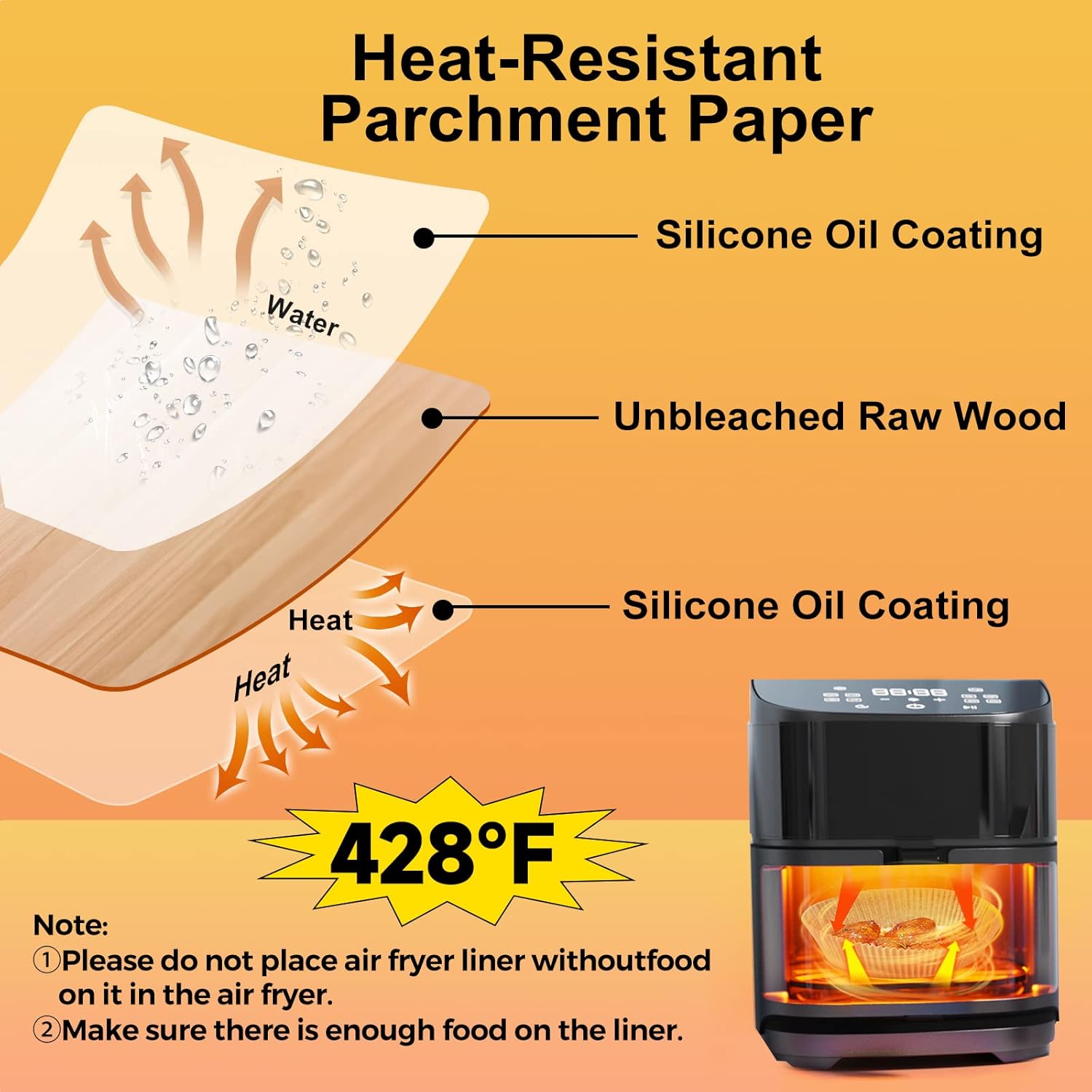 - Reliable Material: The air fryer parchment paper liners is made of food-grade parchment paper, which is oil proof, water proof and non-stick. Baking paper can withstand temperatures up to 428℉ and it has no effect on the taste of food