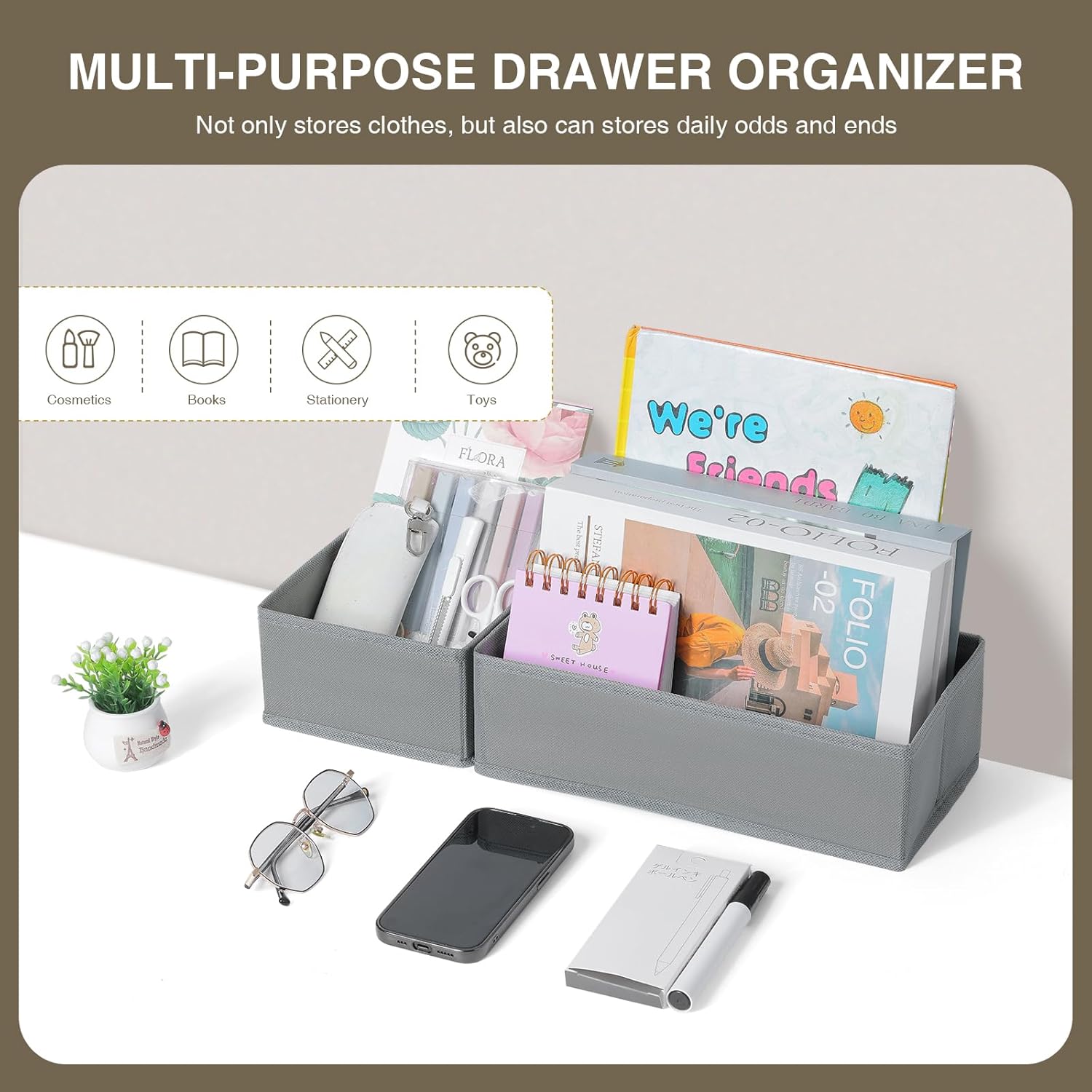 DIMJ Drawer Organizers Clothes, Set of 4 Dresser Organizer Bins, Fabric Closet Organizers and Storage, Shallow Drawer Dividers for Nursery, Clothing, Baby Clothes, Socks, Underwears, Tie (Grey)