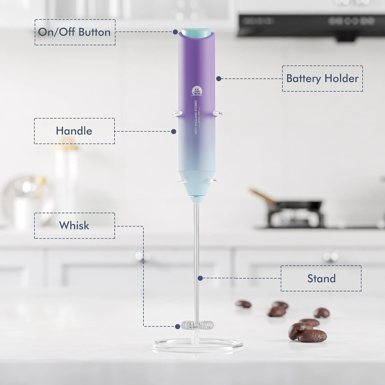 Powerful Milk Frother Handheld Foam Maker, Mini Whisk Drink Mixer for Coffee, Cappuccino, Latte, Matcha, Hot Chocolate, With Stand, North Light