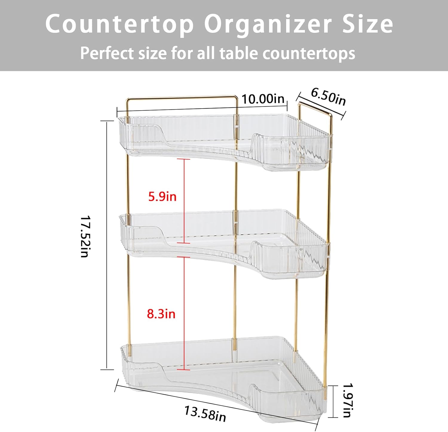 • Multiple Sizes for Any Space:The 2-tier design measures 13.6 x 10 x 11.6 inches, while the 3-tier version measures 13.6 x 10 x 17.5 inches. Its sleek and practical design fits perfectly in bathroom corners, kitchen counters, and more, combining aesthetics with functionality