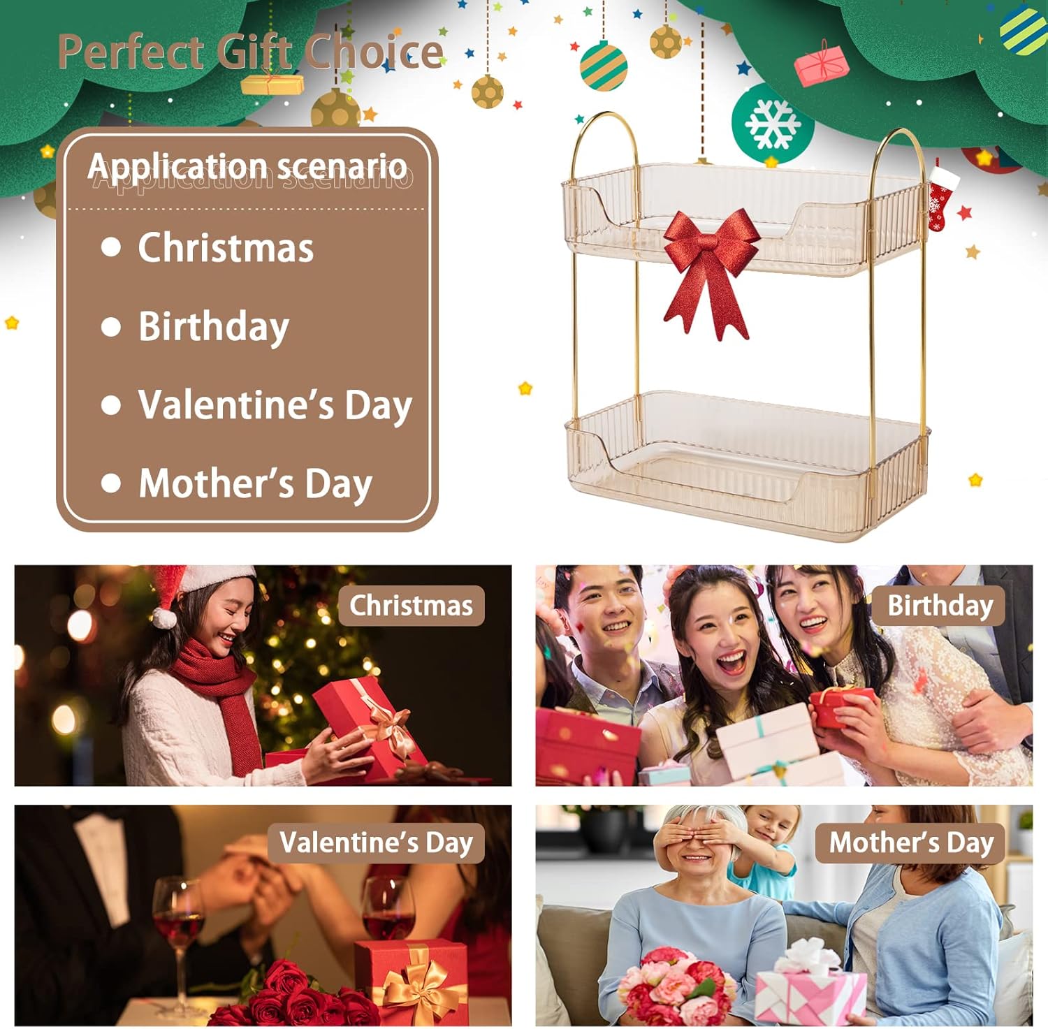 Bathroom Counter Organizer Countertop Storage, Cosmetics Skincare Shelf, Makeup Organizer Perfume for Dresser Vanity Tray, Spice Rack for Kitchen(2 Tier-Gold)