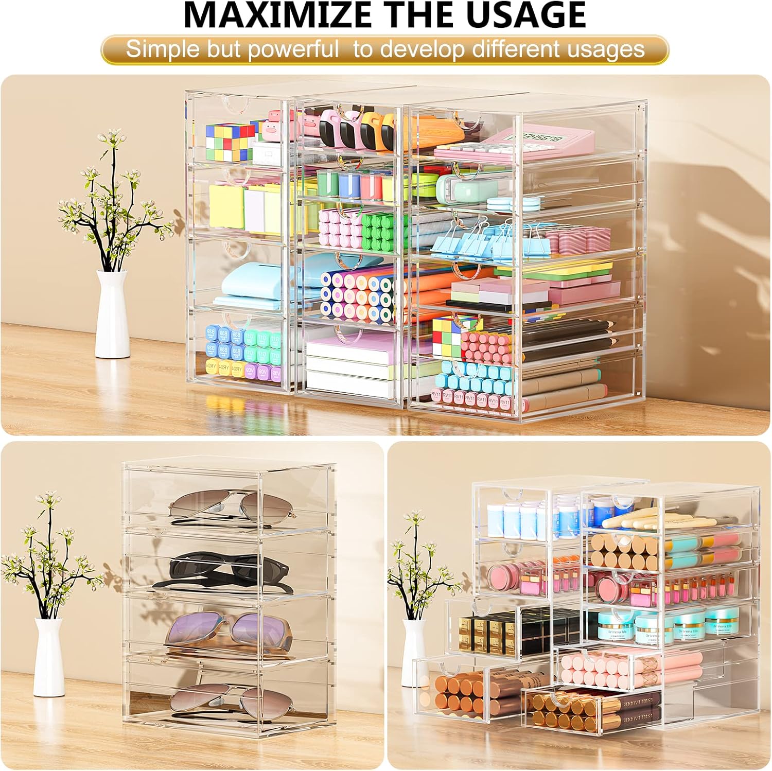 - Dustproof and High Quality: This clear Acrylic storage drawer is dust proof and waterproof, and can protect the items we put away from dust and water. In addition, the desk organizer is made of shatterproof plastic. The sturdy, transparent and fashionable design is compatible with decoration of any rooms. PLEASE DO NOT PUT IN DISHWASHER. Easily clean with soap and warm water.