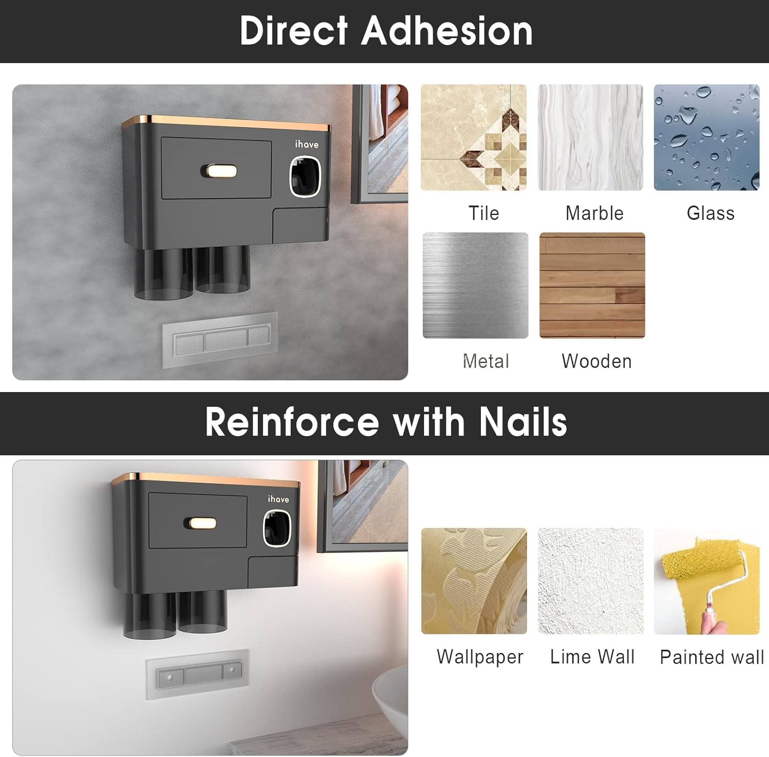 - Easy to Install: Simplify your life with easy installation of iHave toothbrush holders - No drills or holes required! You can install it in a matter of minutes by cleaning the wall and pressing the adhesive strip to bond the wall for 2 hours entirely. After that, you can hang your tooth brushing holder, and it will stay firmly in place without any worries.