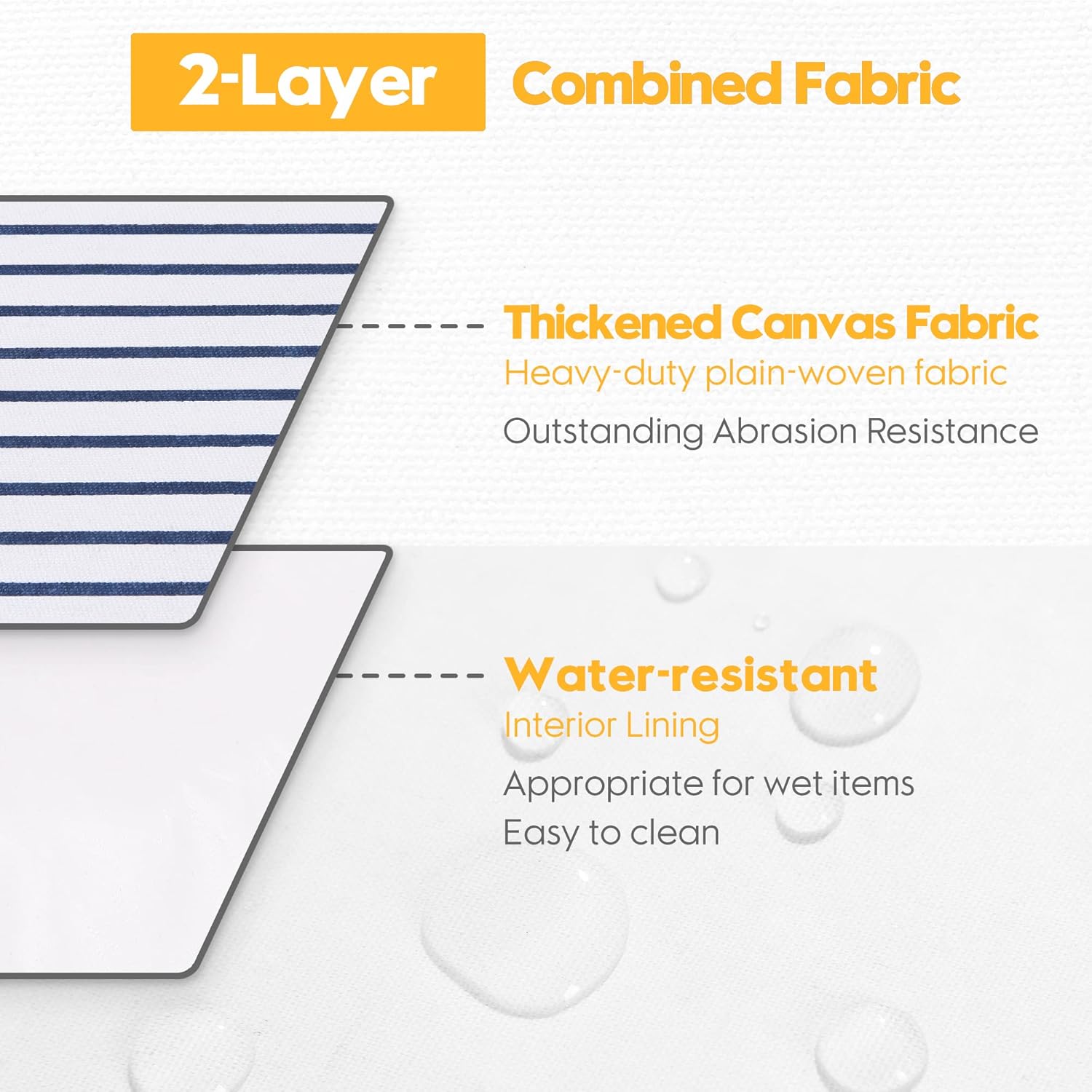• Sturdy & Waterproof Material – Made of thickened canvas fabric with a layer of PE coating lining, the basket provides high tear resistance while the lining is waterproof which allows you to store wet clothes or other moist items