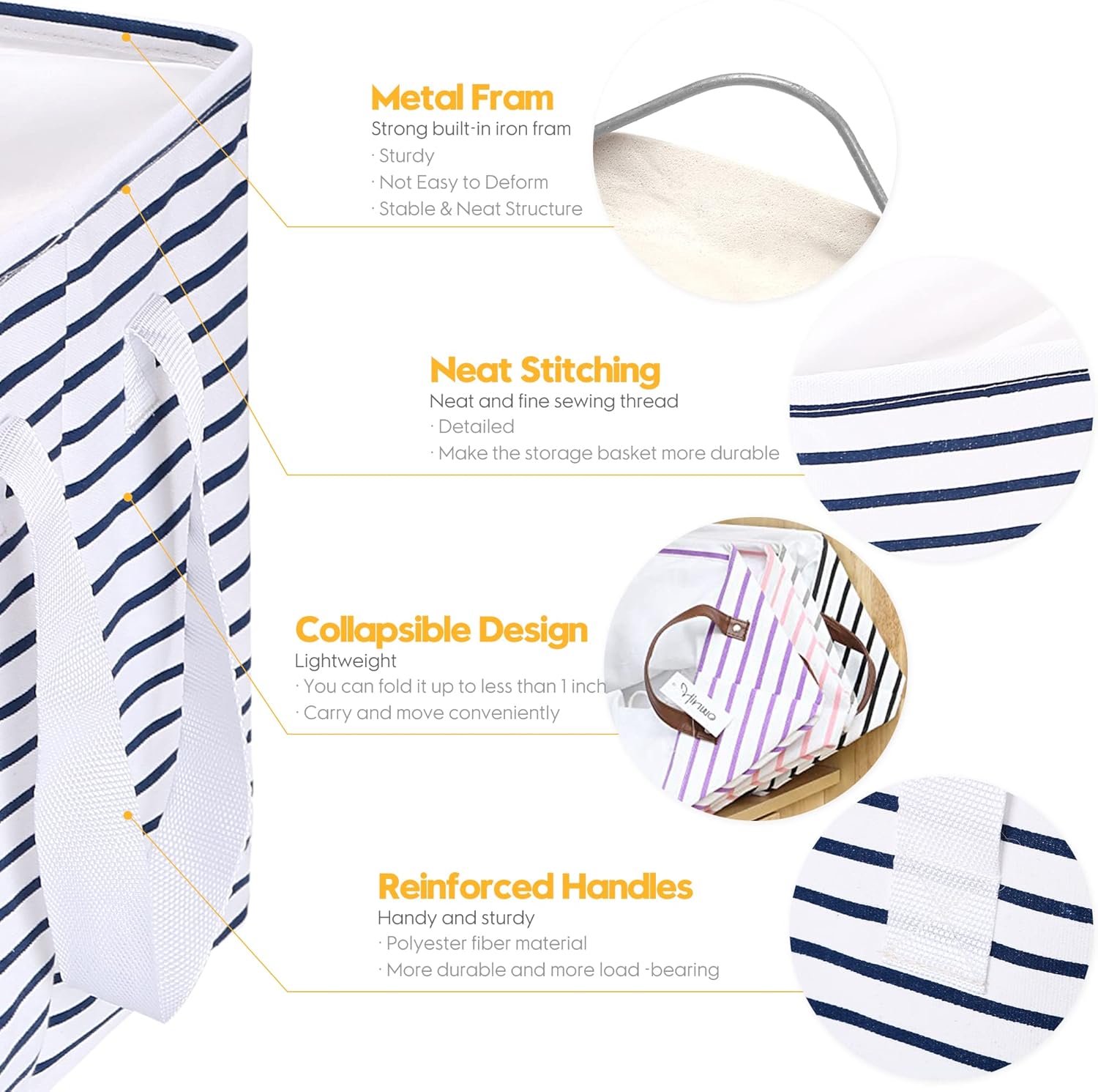 Hinwo 102L XXL Storage Bins, 4-Pack Closet Organizers and Storage, Foldable Clothes Storage Baskets with Handles, Containers for Clothing, Blanket, Comforters, Toys, Bedding (Navy Stripe)