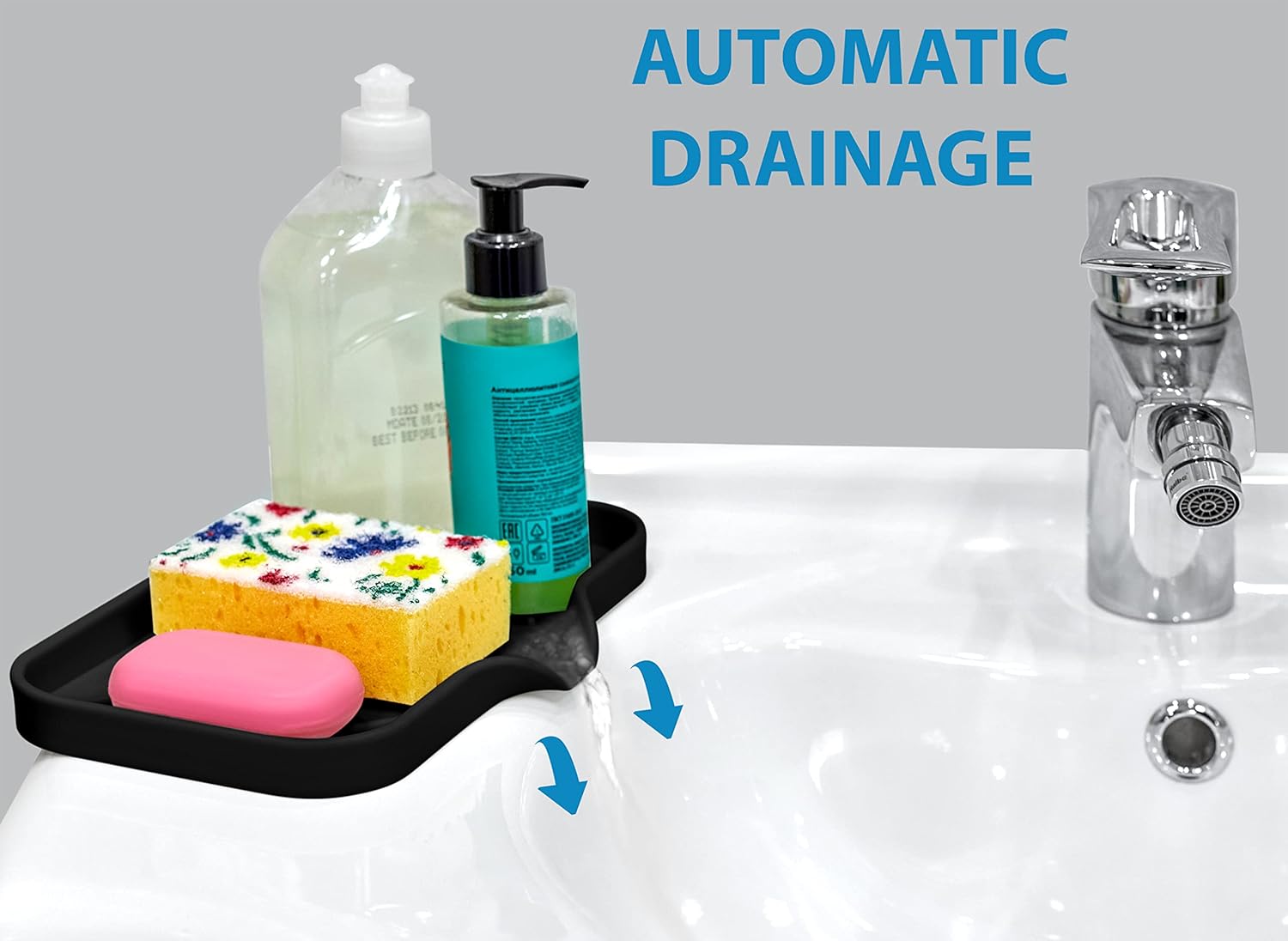 Multi-Functional Black Soap Holder - Soap Bar & Sponge Holder, Space-Saving Sink Caddy - Organize Your Kitchen!