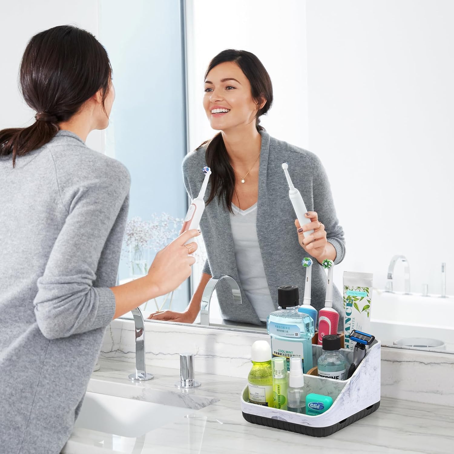 • Anti-slip & Drainage: The bottom of kids toothbrush holder with 4 rubber pads prevent slippage and makes marble toothbrush holder freestand very stable. The drainage holes of the tooth brush organization to make it more ventilated and breathable, keep dry and tidy