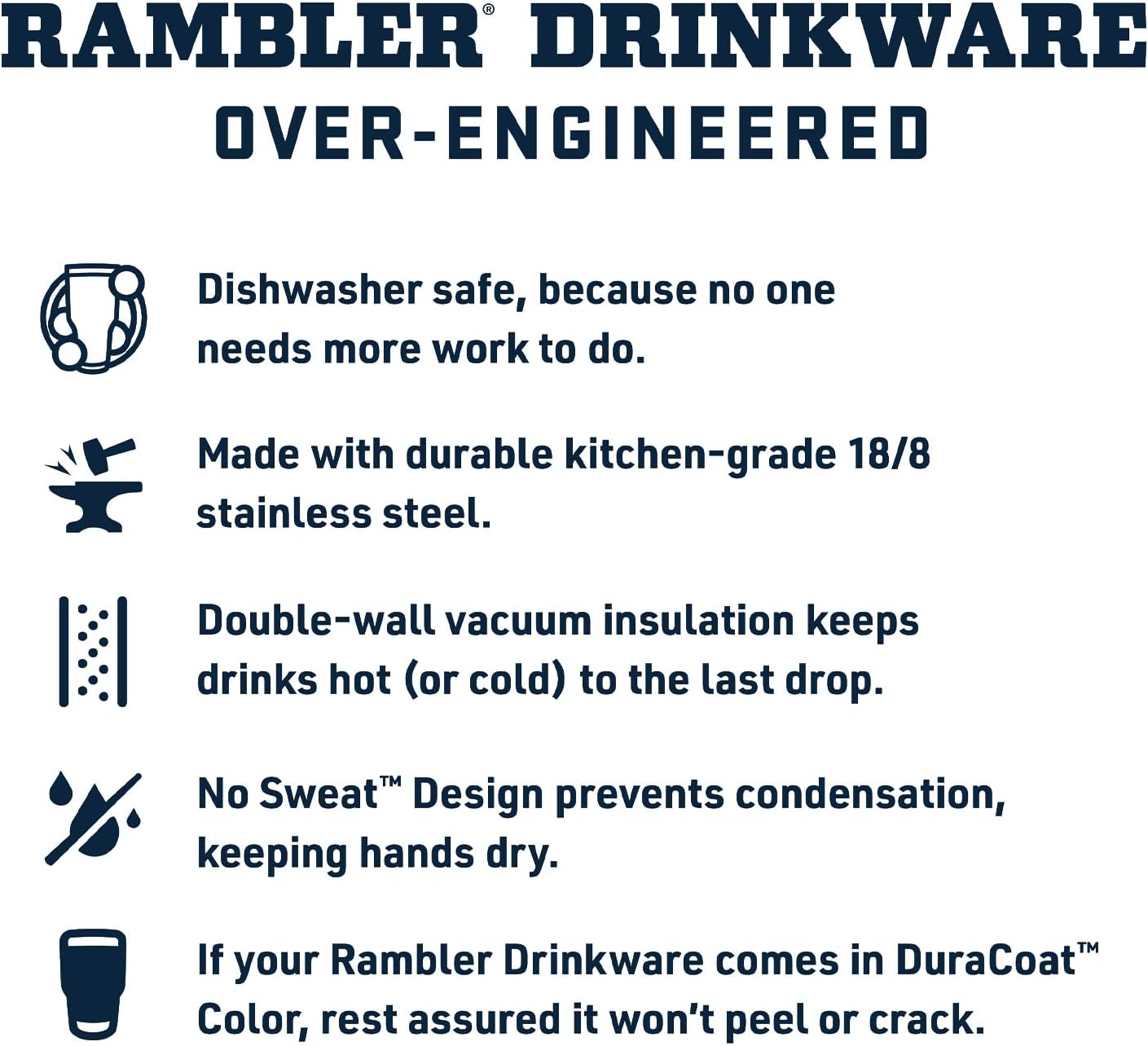 - The Rambler 26 oz. Cup is made from durable stainless steel with double-wall vacuum insulation to protect your hot or cold beverage at all costs