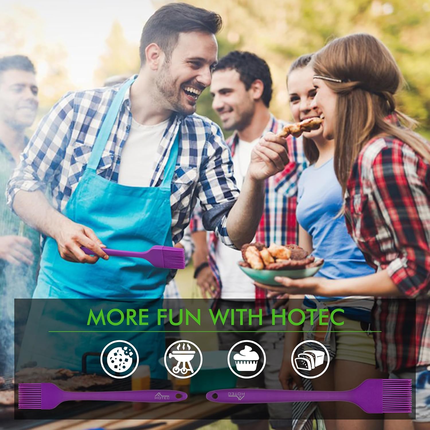 HOTEC Basting Brushes Silicone Heat Resistant Pastry Brushes Spread Oil Butter Sauce Marinades for BBQ Grill Barbecue Baking Kitchen Cooking BPA Free Dishwasher Safe (Purple) 2pcs