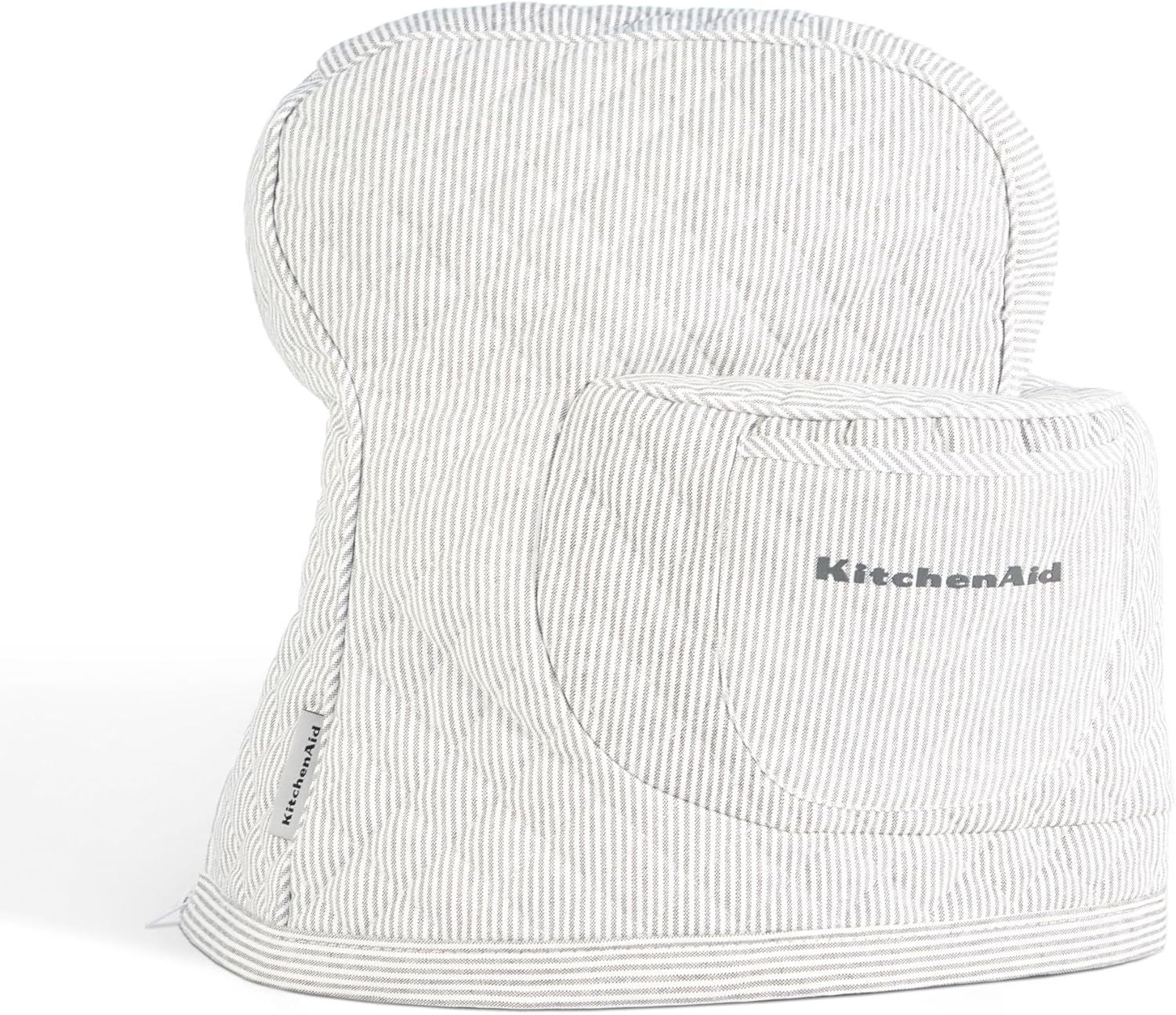 KITCHENAID Fitted Tilt-Head Stand Mixer Cover with Storage Pocket, Quilted 100% Cotton,14.4"x18"x10", Ticking Stripe Charcoal Grey