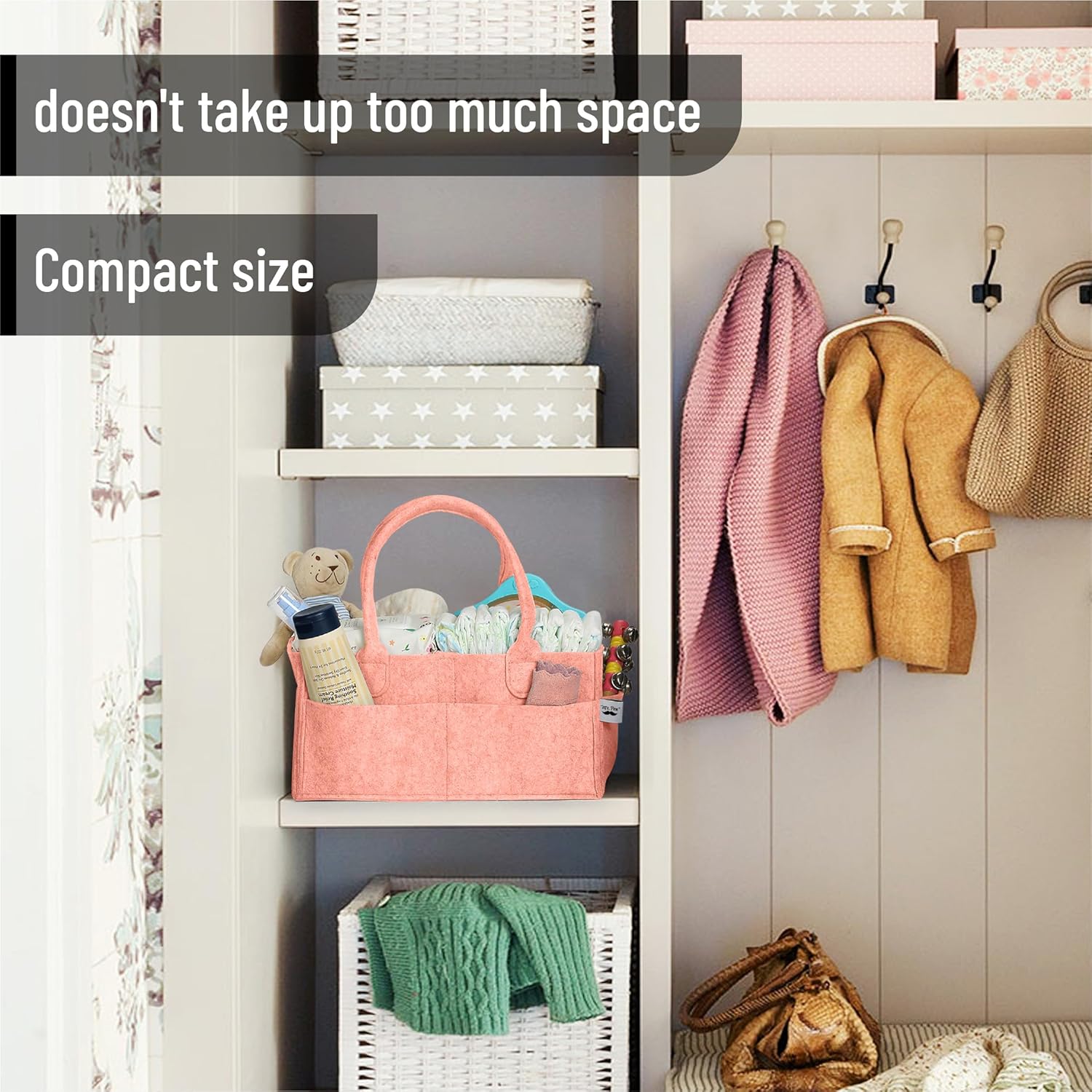 - Package includes 1 baby diaper organizer, one of the must-have baby necessities that will make your life as a parent easier. It's perfect for storing diapers, wipes, and other baby supplies.