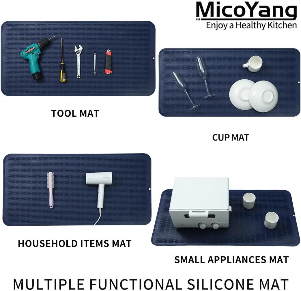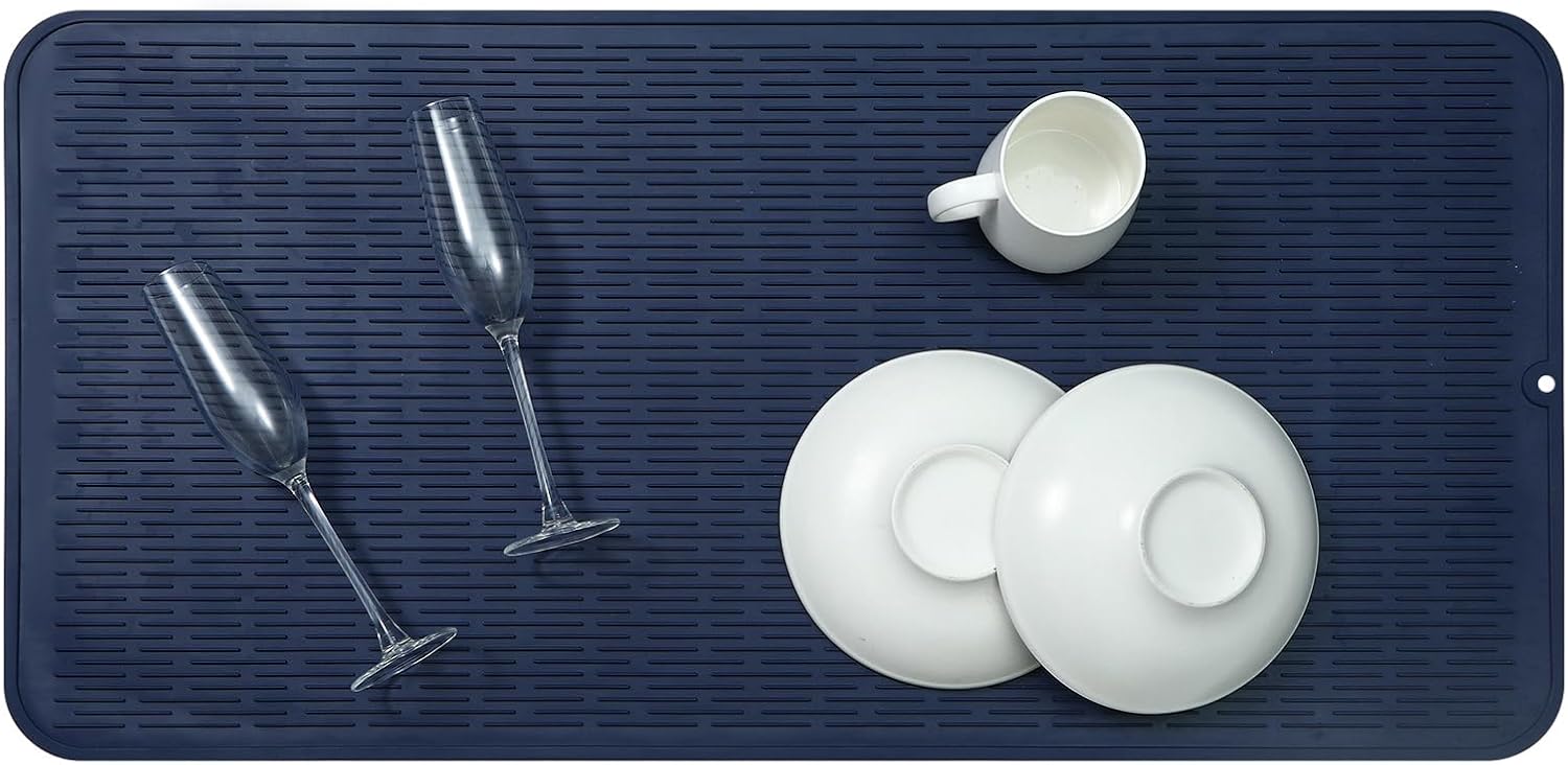 Silicone Dish Drying Mat for Multiple Usage,Easy clean,Eco-friendly,Heat-resistant Silicone Mat for Kitchen Counter or Sink,Refrigerator or Drawer Liner Navy Blue 5XL 36inches x 18inches