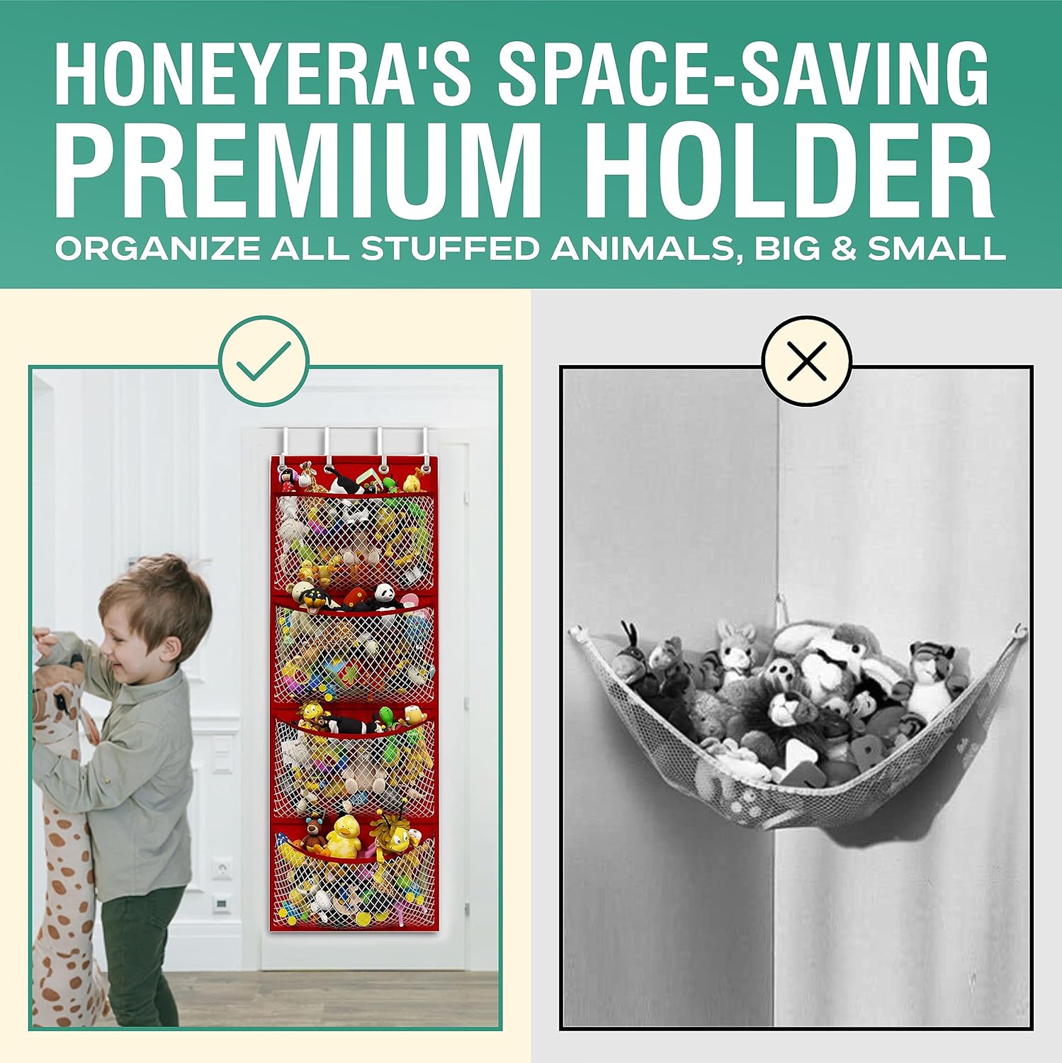 Honeyera Storage for Stuffed Animal - Over Door Organizer for Stuffies, Baby Accessories, and Toy Plush organizer/Easy Installation with Breathable Hanging Storage Pockets (SuperHero Red)