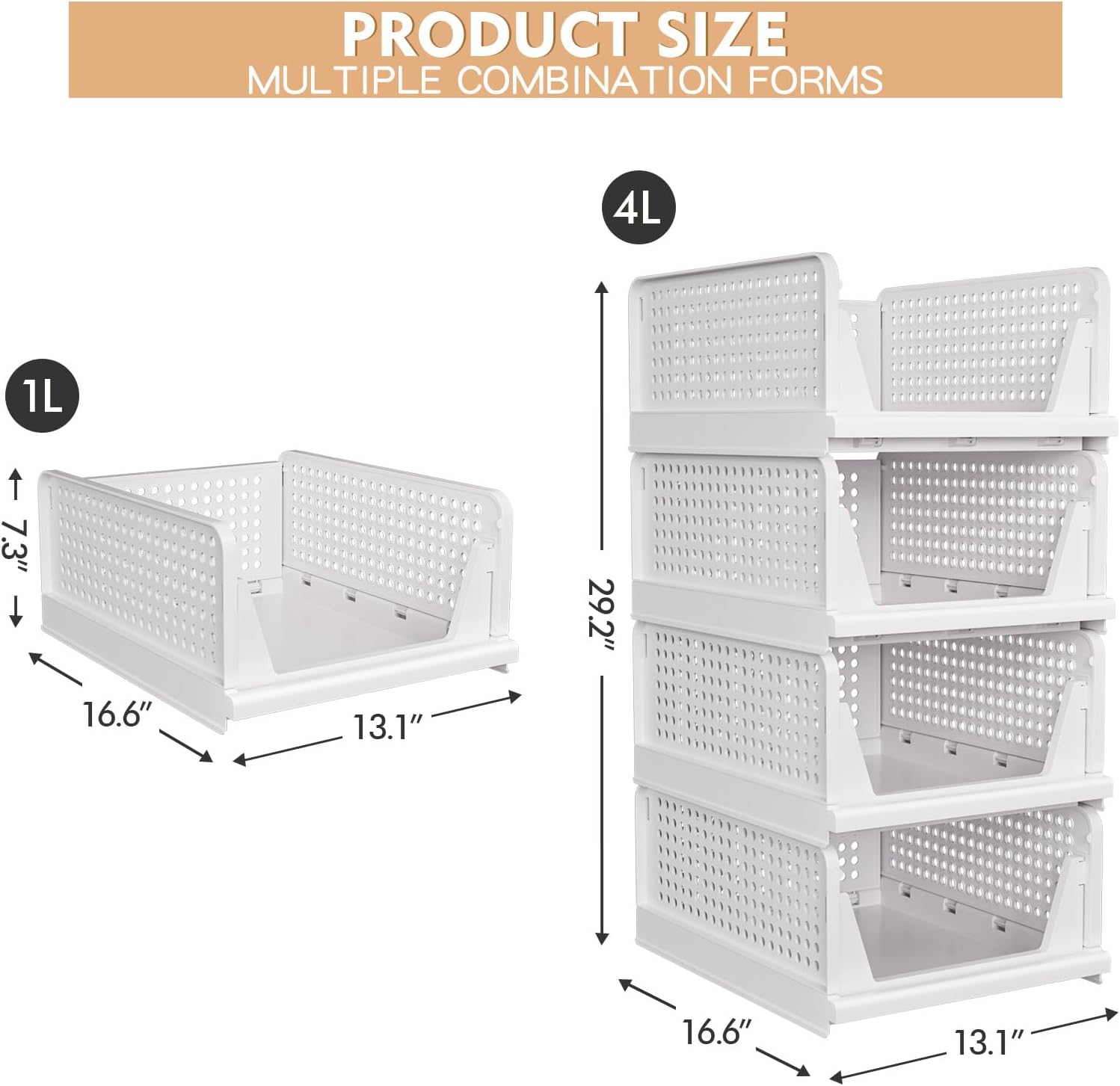 - 【Assembly Easily & Stackable】Wardrobe clothes organizer,easy to Install, easy to foldfollow the steps in pictures.If you don't want to use them, you can take them apart and put them away without taking up space.Dimensions of each when set up: S:16.6" x 13.1" x 5.55" (L x W x H), L:16.6" x 13.1" x 7.32" (L x W x H).