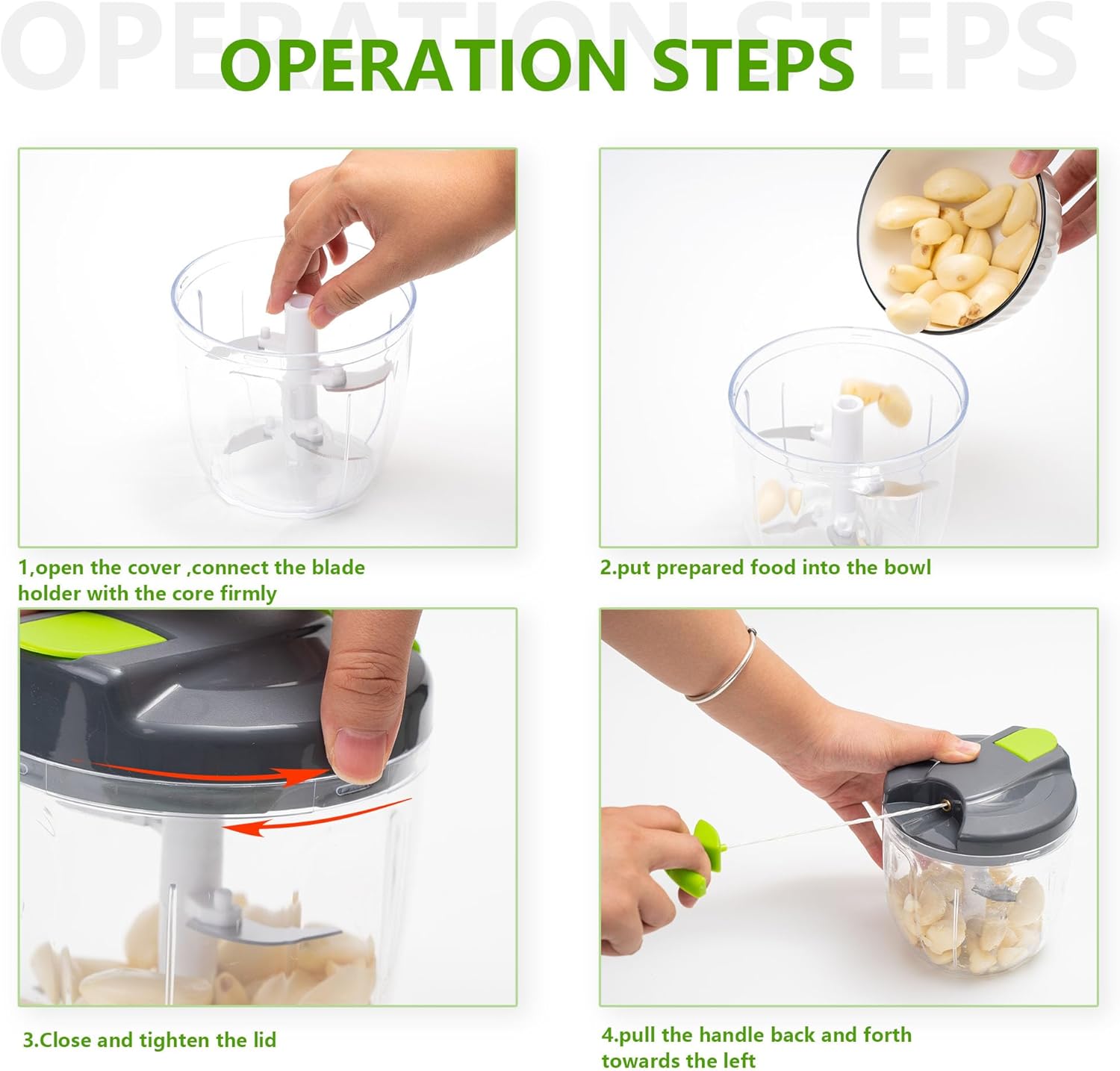 Manual Food Processors & Chopper with Cover and Handle, Manual Onion Chopper Slicer Cutter, Vegetable Chopper, Suitable for Garlic Carrots Onions Peppers Fruits Mincing.(900ML)