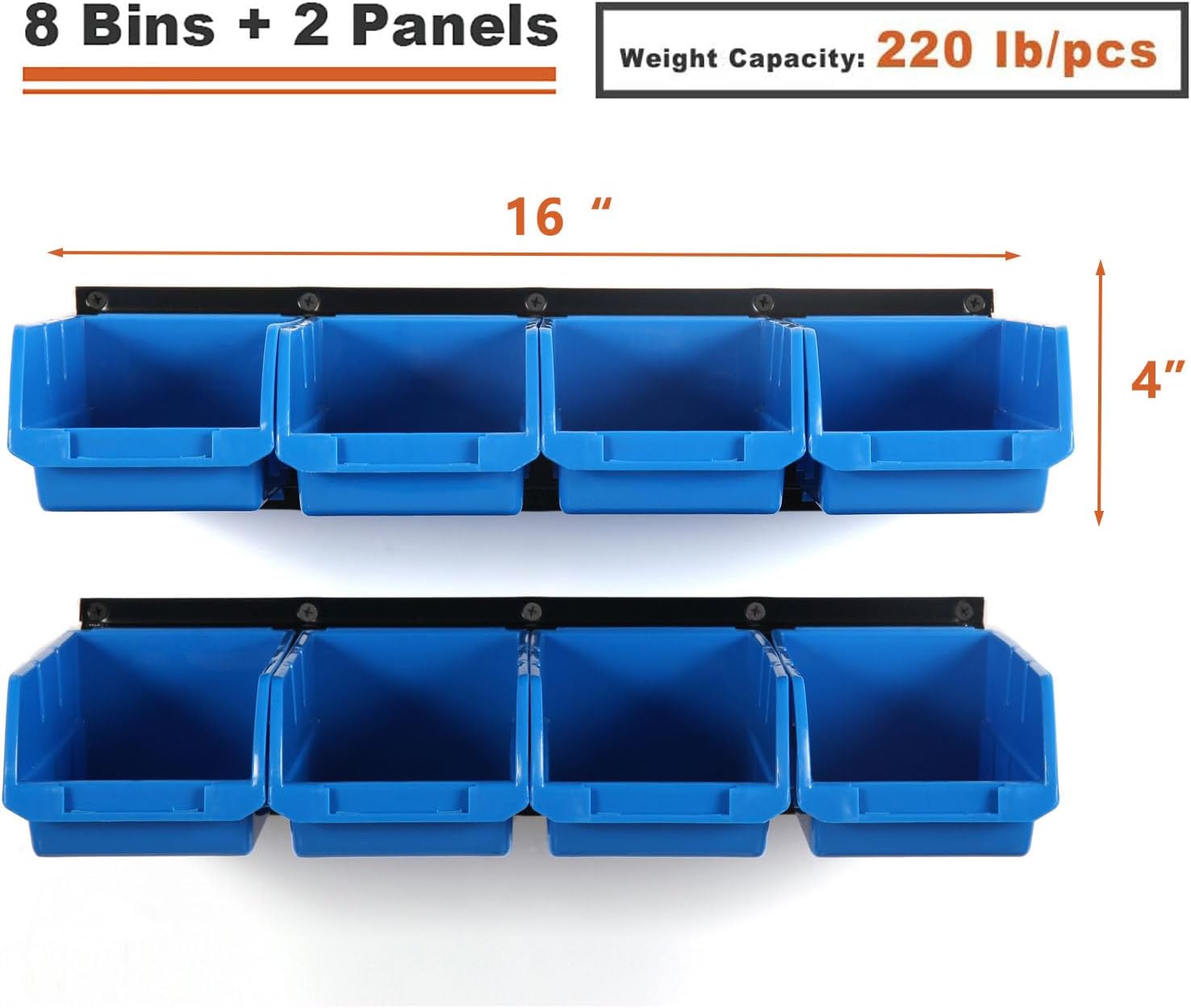Wallmaster 8-Bin Storage Bins Garage Rack System 2-Tier Orange Tool Organizers Cube Baskets Wall Mount Organizations (Blue)