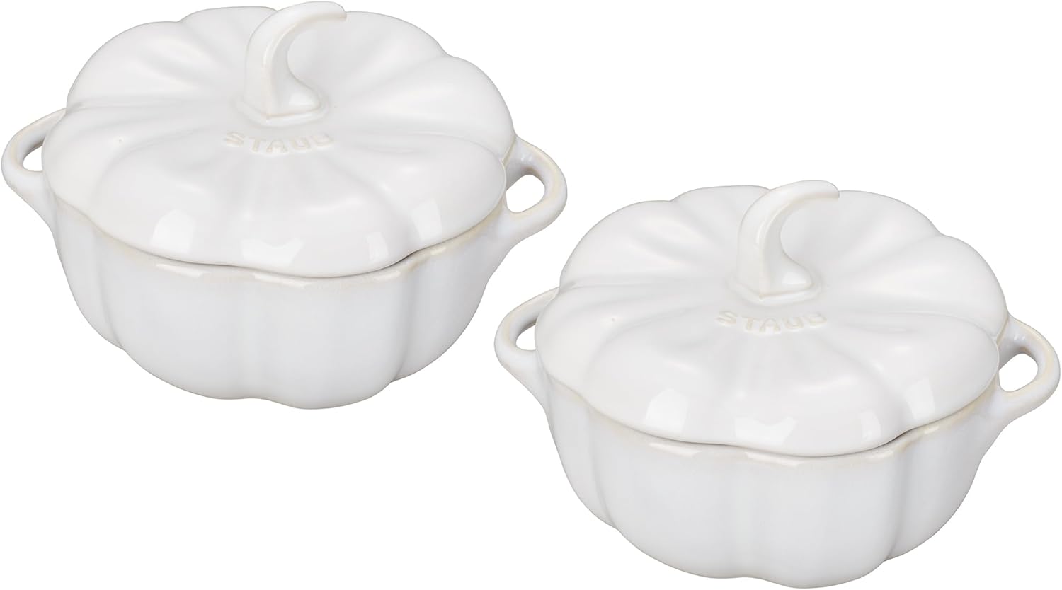 STAUB Ceramic 2-pc 16-oz Petite Pumpkin Cocotte Set - Rustic Ivory