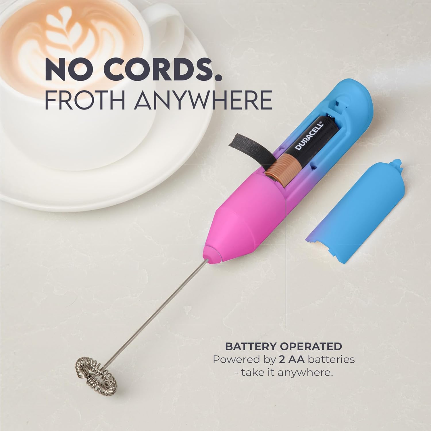 - Ready to Use: Includes 2 Duracell AA batteries so you can froth right out of the box.