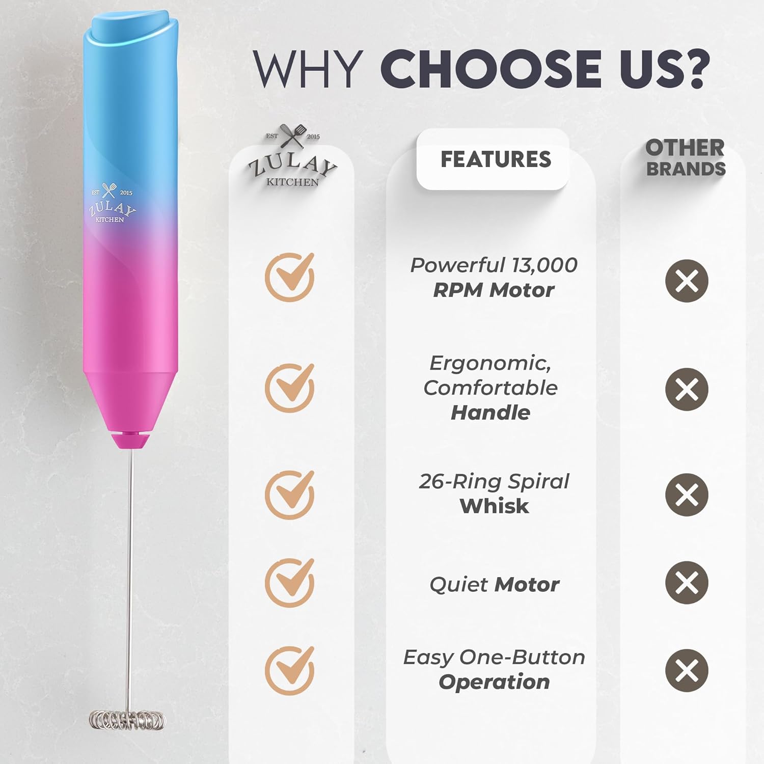 Zulay Kitchen Milk Frother Handheld with 2 Duracell AA Batteries – Electric Drink Mixer for Coffee, Lattes, Cappuccinos, Matcha & Hot Chocolate – Portable Foam Maker & Coffee Bar Accessory