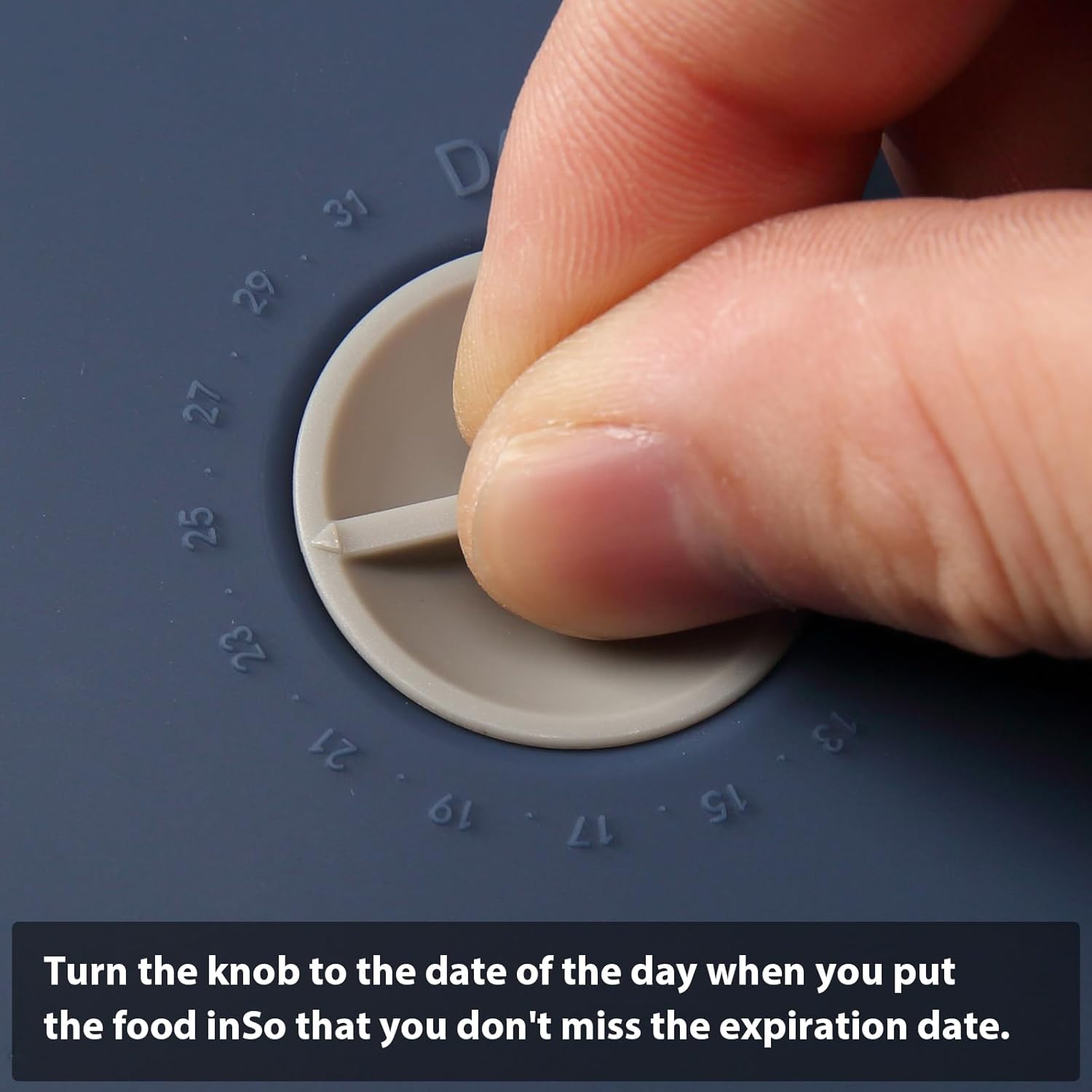 - 【Unique knob design】: Turn the knob to the date of the day when you put the food in, so that you don't miss the expiration date. The knob marks the storage date so as not to miss the best tasting period.