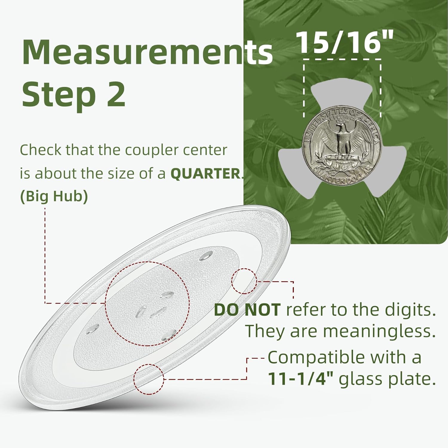 - This 11.25 IN Microwave Glass Turntable has a one-quarter sized big coupler hole in the center. (The center spot of turntable coupler measures 15/16" in diameter)