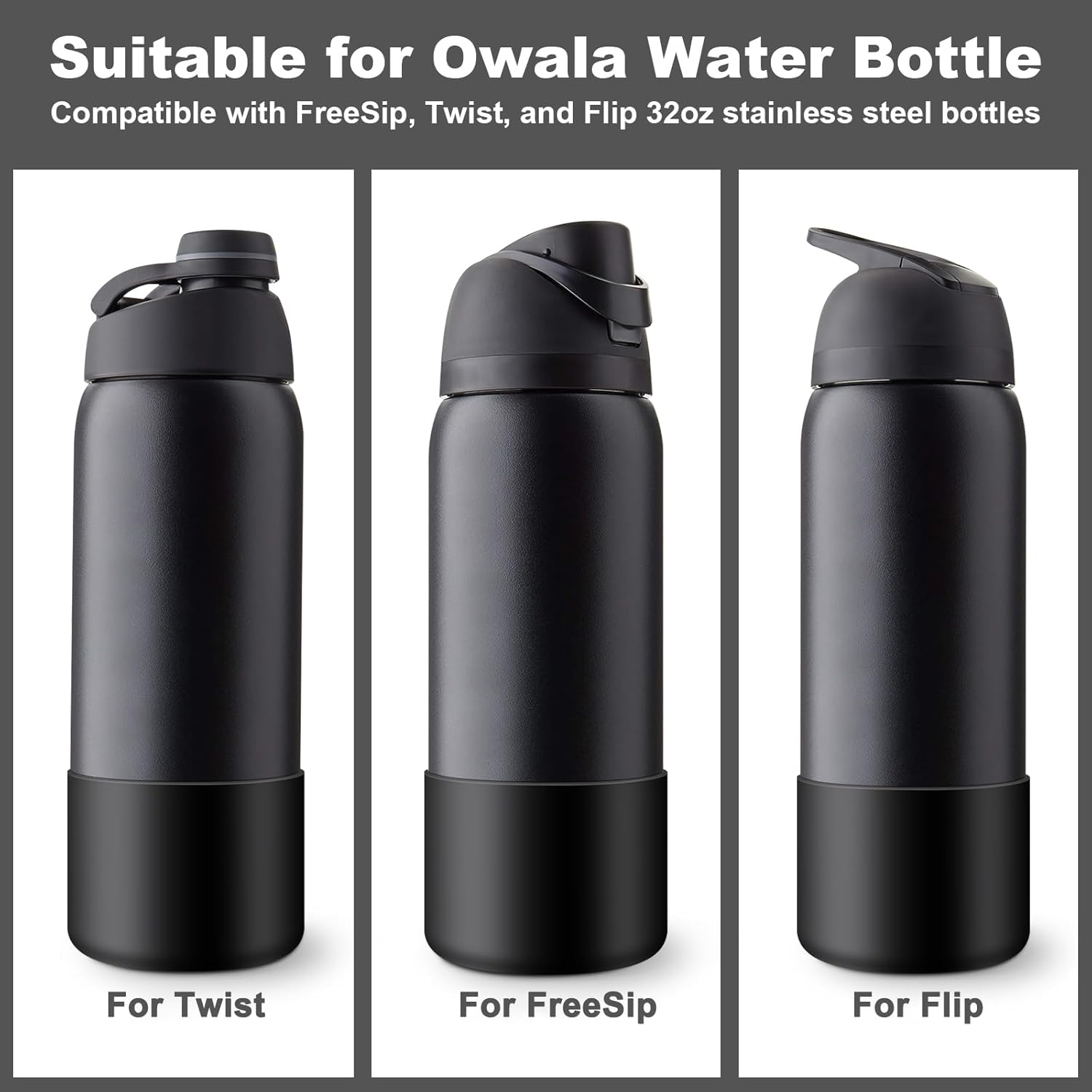- Perfect Fit -- Our Silicone boot is designed to fit perfectly for Owala FreeSip, Twist, and Flip stainless steel water bottles.. It's precisely made to fit the cup bottom and won't fall off easily.