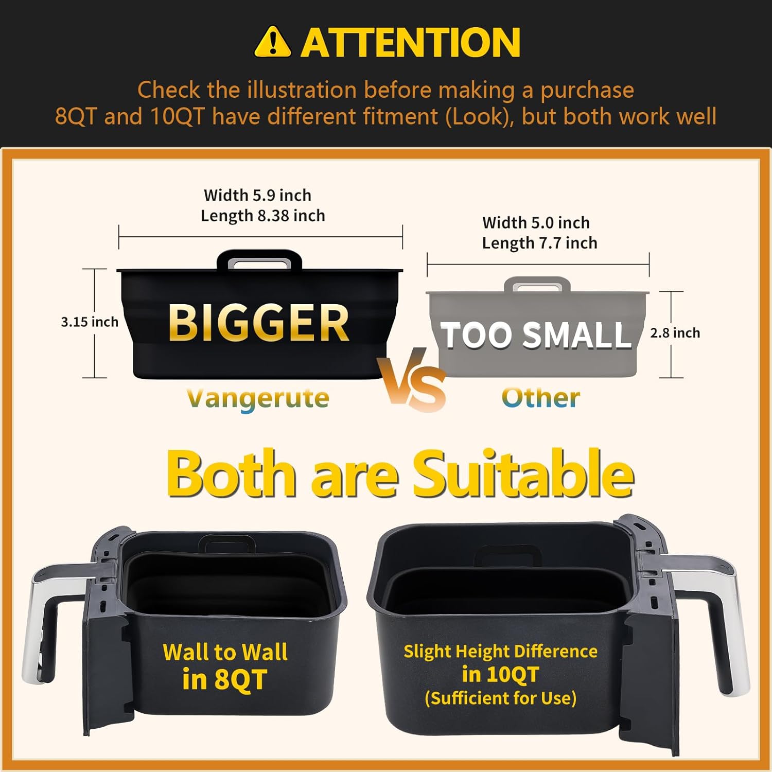 - UPGRADED EASY CLEANING: The manufacturing process of Vangerute air fryer silicone liners has been improved for easy cleaning and is even dishwasher safe. Simply rinse away grease and stains with ease, offering protection for your air fryer basket. Say goodbye to cleaning headaches and enjoy long-lasting durability