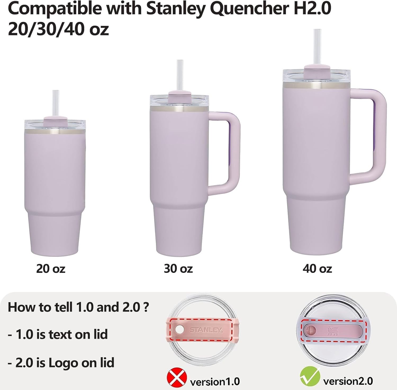 - 2 sets orchid leak proof stopper, each set contains 1* straw cover, 1* round lid leak stopper, 1* square spill stopper. Made of food-grade odorless silicone, compatible with Stanley Quencher H2.0 FlowState Tumbler 30oz & 40oz