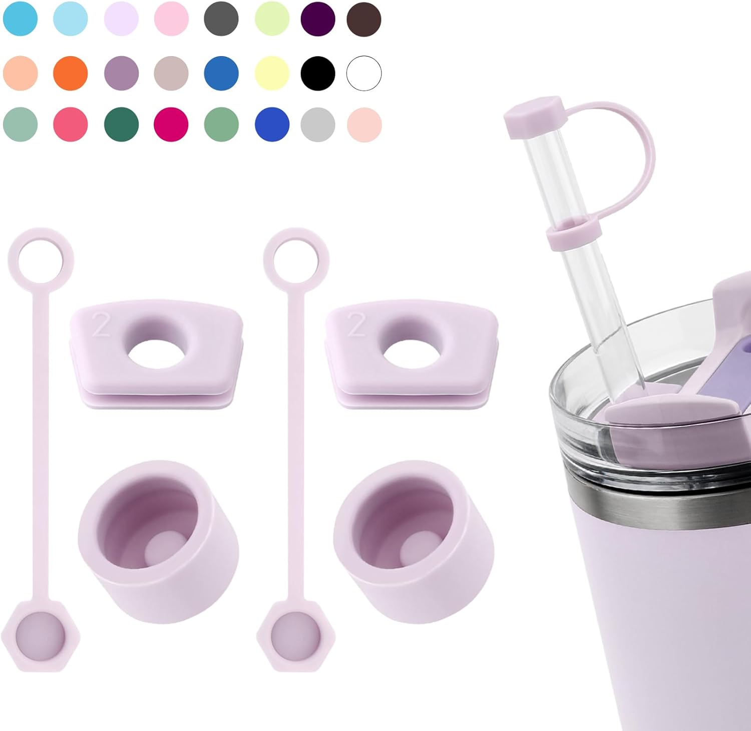 Silicone Spill Stopper Set Compatible with Stanley Cup 2.0 30oz & 40oz with Straw Cover (Set of 2, Orchid)