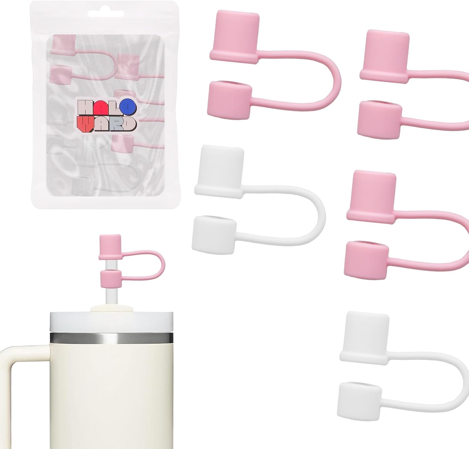 0.4inch Reuseable Straw Covers for Stanley Tumblers (Basics-White, 10 Pieces) (10pcs-Basics-LightPink)