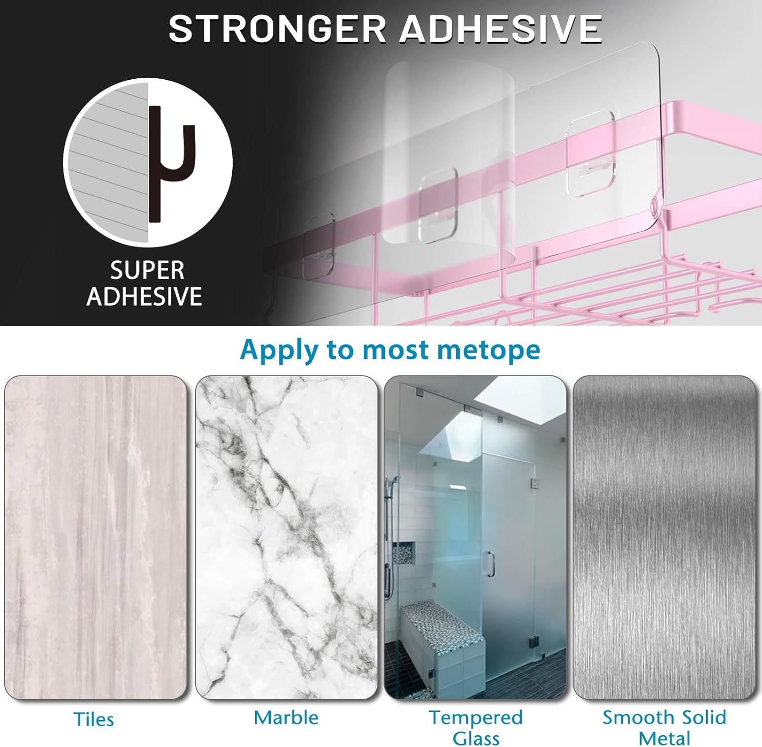- 【Stronger Adhesive】The upgraded version of the transparent non-marking adhesive provides you with stronger stability. It can be installed without drilling. The load-bearing capacity can reach up to 40lb, which is twice that of other products on the market. Since it won't fall from your wall, you don't have to worry about the loss caused by the shower organizer falling after installation.