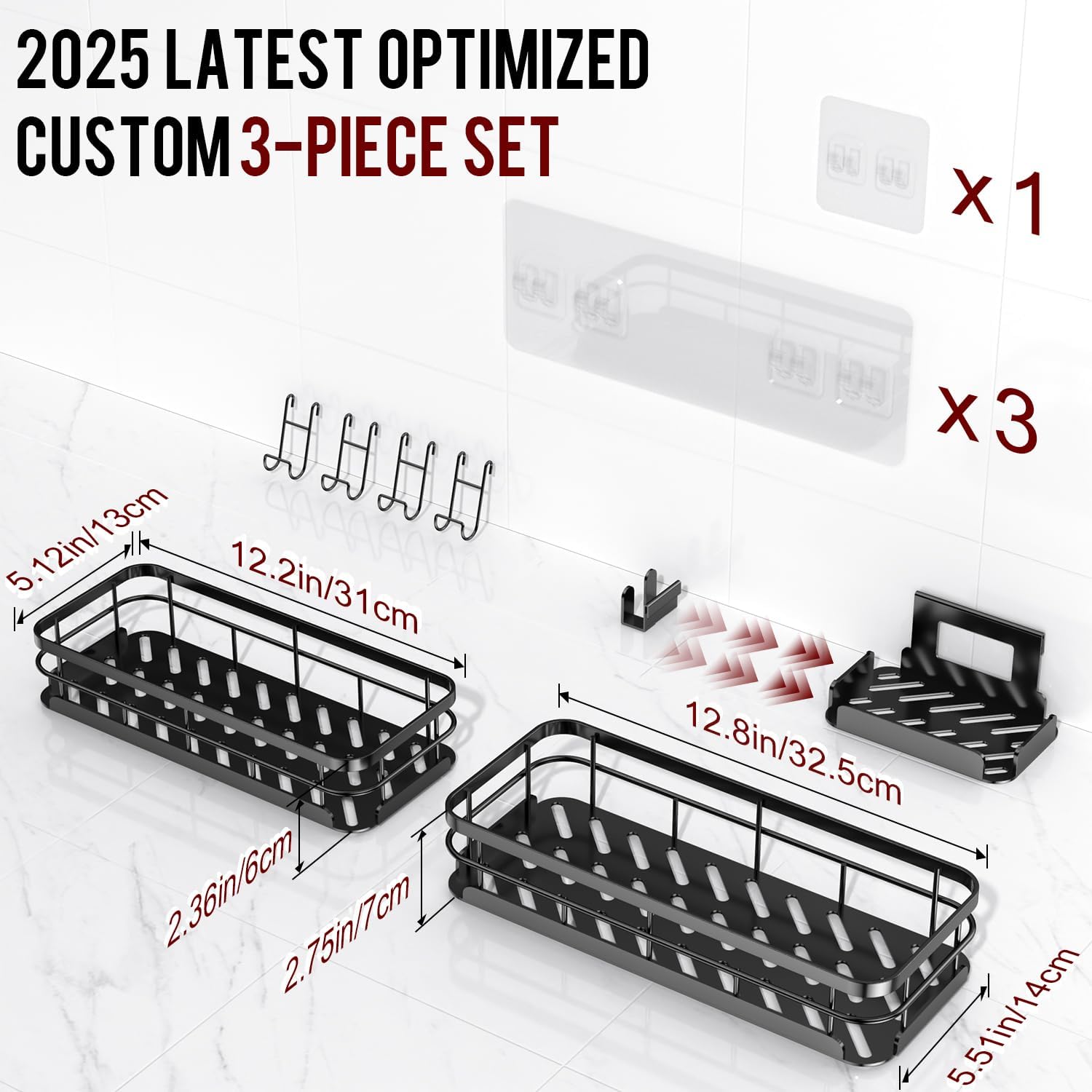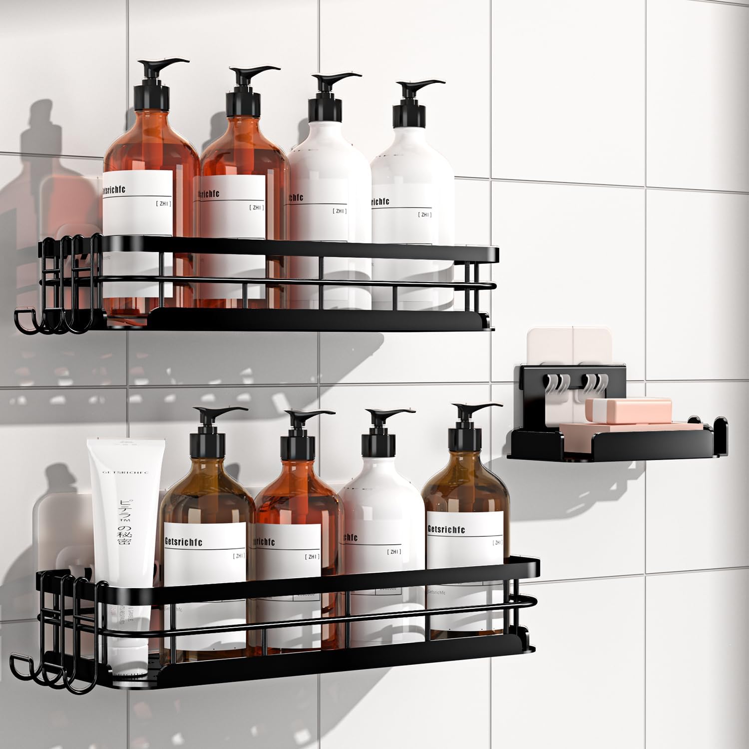 - 【Package Contents & 7/24 After Service】- 2 x Large capacity shower caddies, 1 × customized detachable soap holder, 4 x customize upgraded adhesive, 4 x customized N-shaped metal hooks and 1 x user manual. If you need it, we will help you solve the problem within 24 hours and fully resolve it within 7 days. This is what Getsrichfc should do