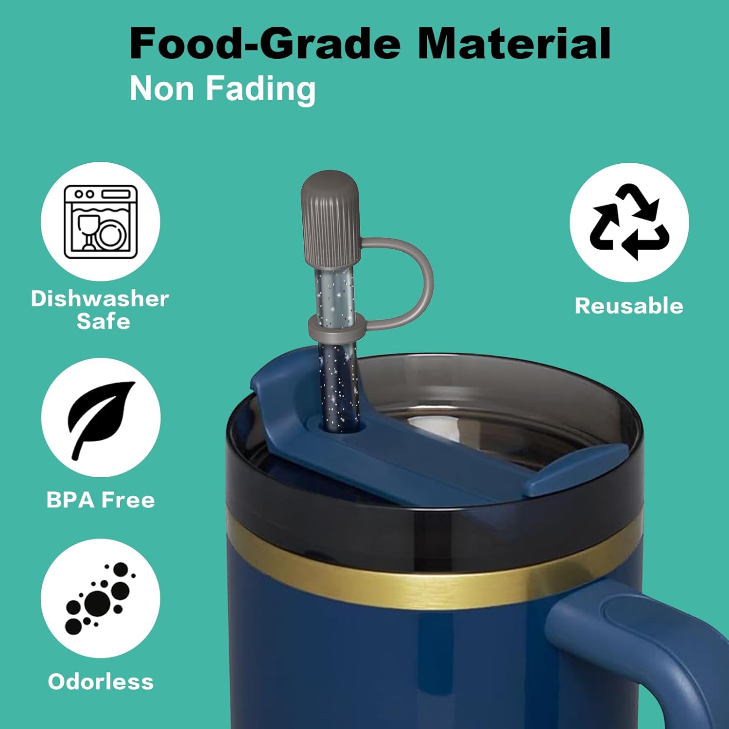 - Food-Grade Material: Each color straw and topper was made of the food-grade PCTG and silicone material, BPA-free, odorless, reusable, durable.