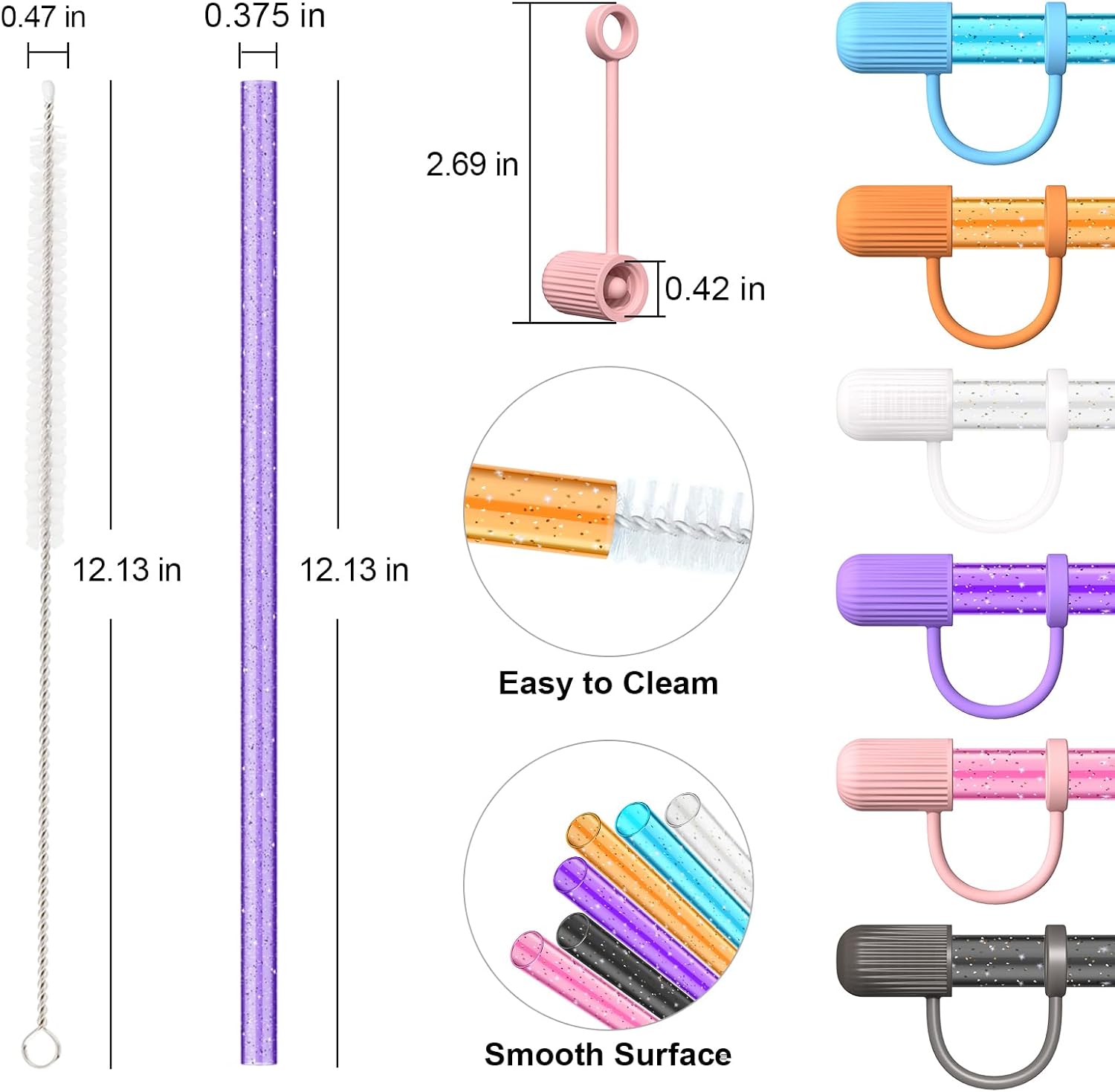 6 Color Replacement Straws with Cover Caps for Stanley Cup 40 oz 30 oz 20 oz 14 oz 64 oz Tumbler, Reusable Drinking Straws with Topper, Stopper, Cleaning Brush for Stanley Cup Accessorie