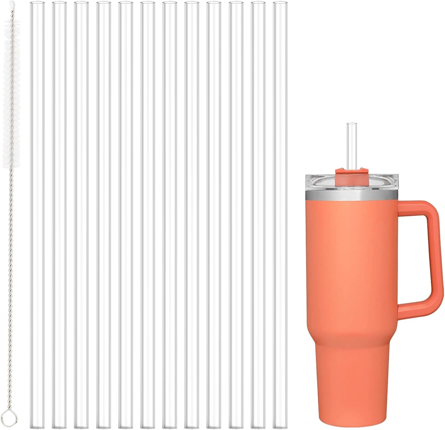 Dishwasher Safe Replacement Straw for Stanley Cup 64oz 40oz 30oz, 12 Pcs Reusable Long Clear Straw with Clear Brush for Stanley Cup Accessories, BPA Free