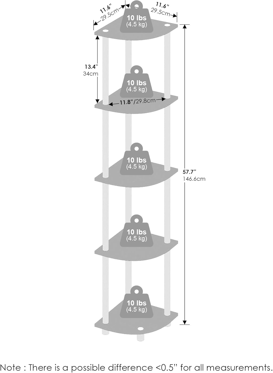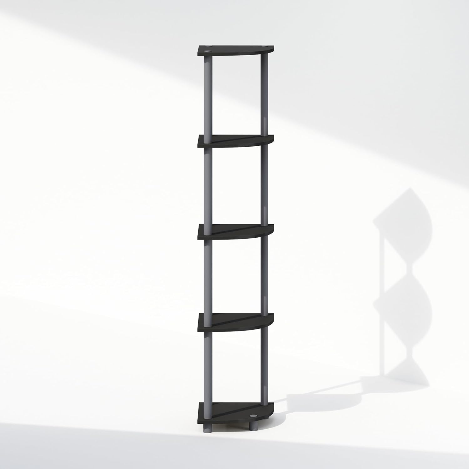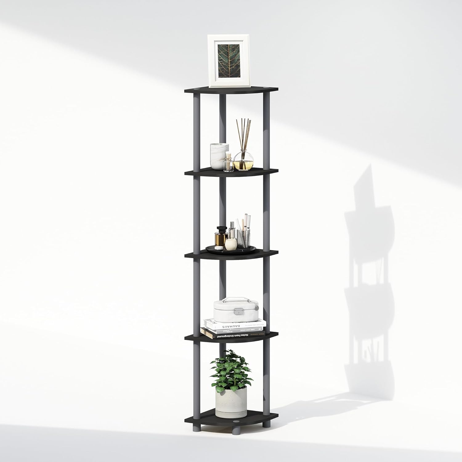 Furinno Turn-N-Tube Corner Shelf, 5-Tier Corner Display Rack, Shelving Unit, for Organization and Storage, Living Room, Home Office, Garage, Bedroom, Black