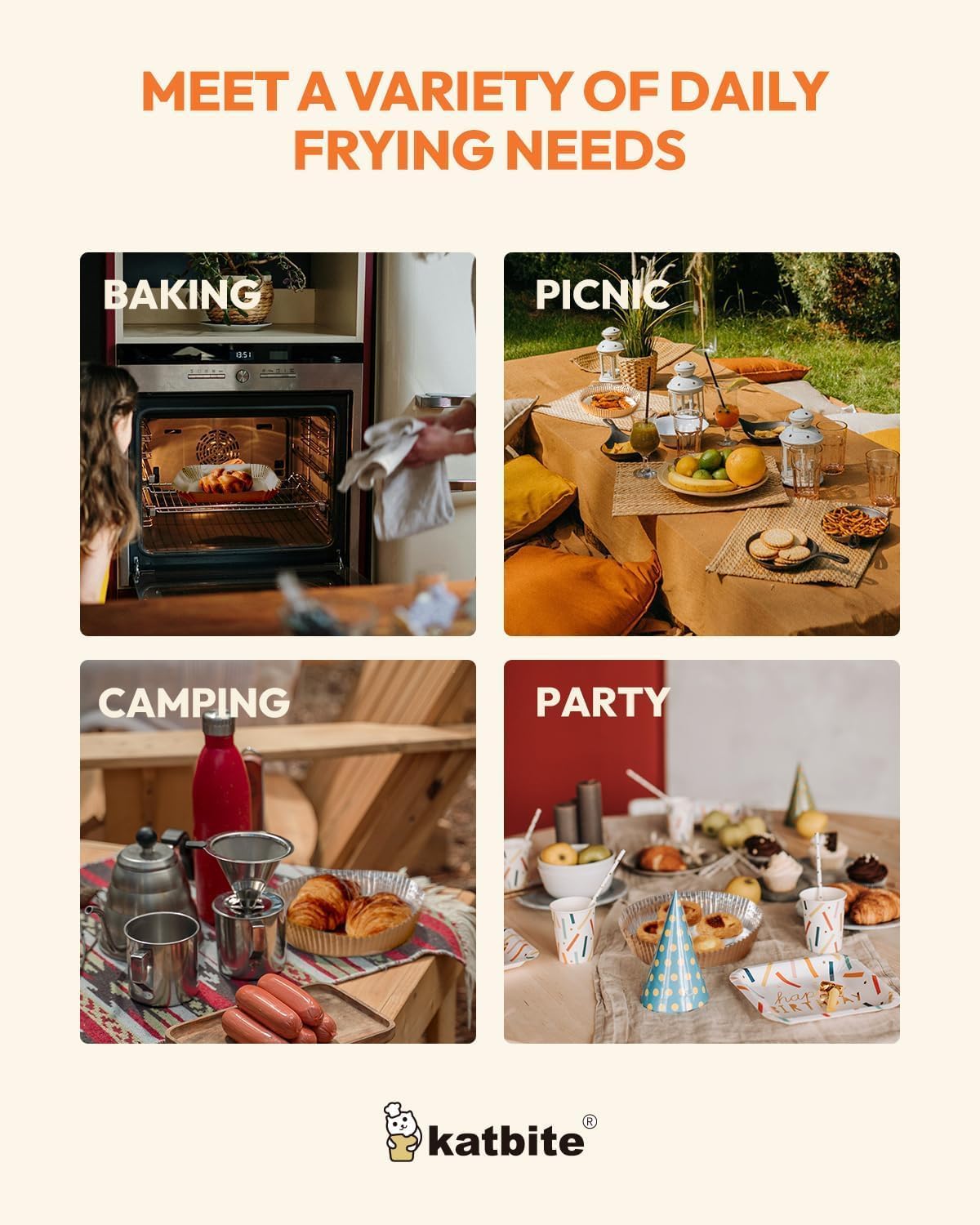 - Wide Application: Katbite disposable air fryer liners, coupled with foil, reduce the need for added oil, promoting healthier meals without compromising taste. Suitable for air fryers, ovens, steamers, cookware, and more, they can be used for baking, roasting, frying, or serving, perfect for home baking, camping, barbecuing, summer gatherings, and beyond. Enjoy healthy and delicious meals hassle-free!