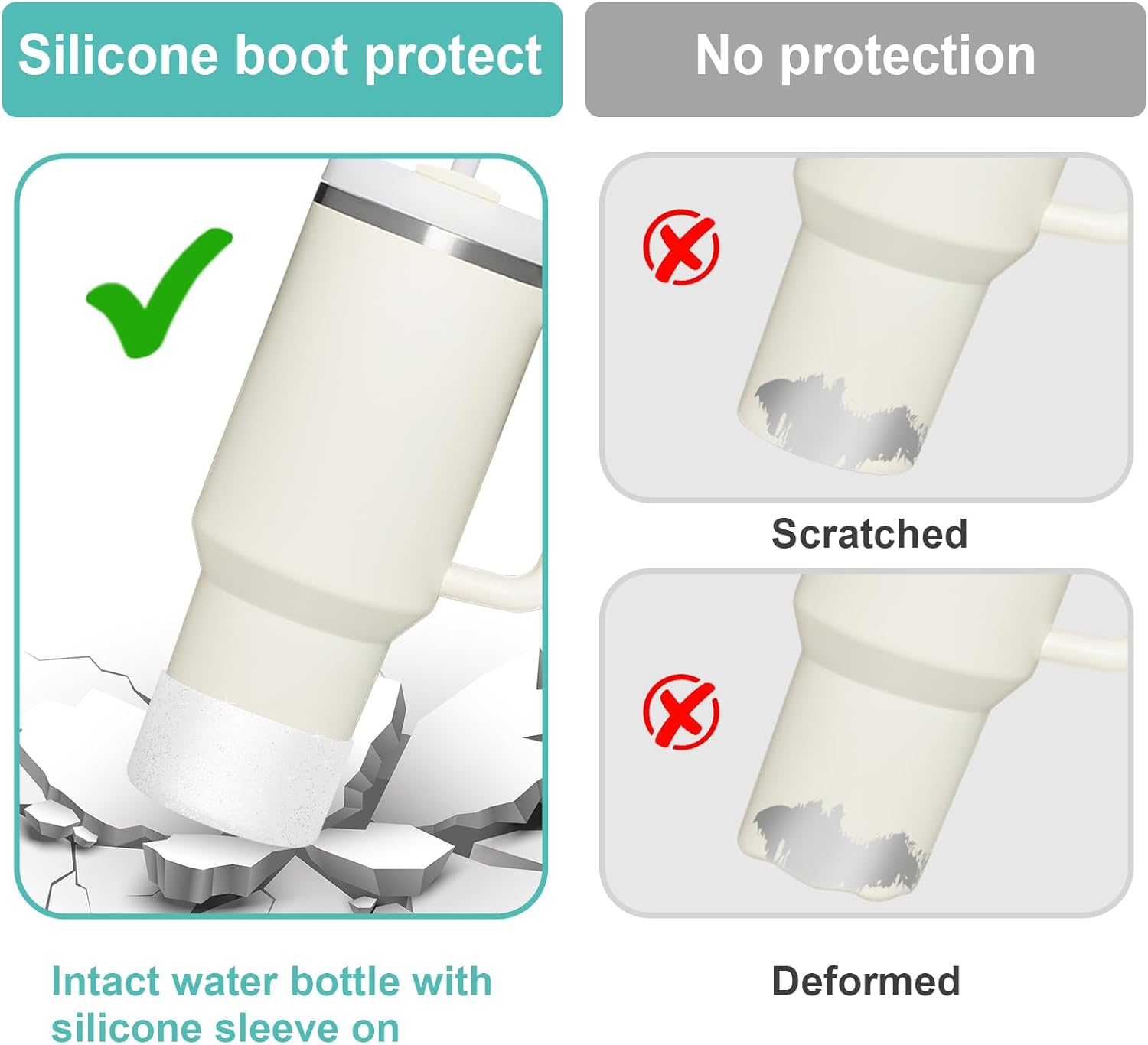 - 【Excellent Protection】Still worried about broken, scratched bottoms of your favorite stainless steel water bottles? Or embarrassed by the clinking sound the bottle makes on the table? This silicone sleeve for Stanley can effectively protect the bottom of the bottle from depression, scratch, skid resistance and noise.