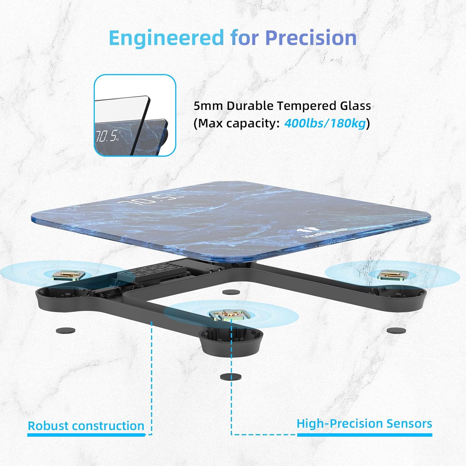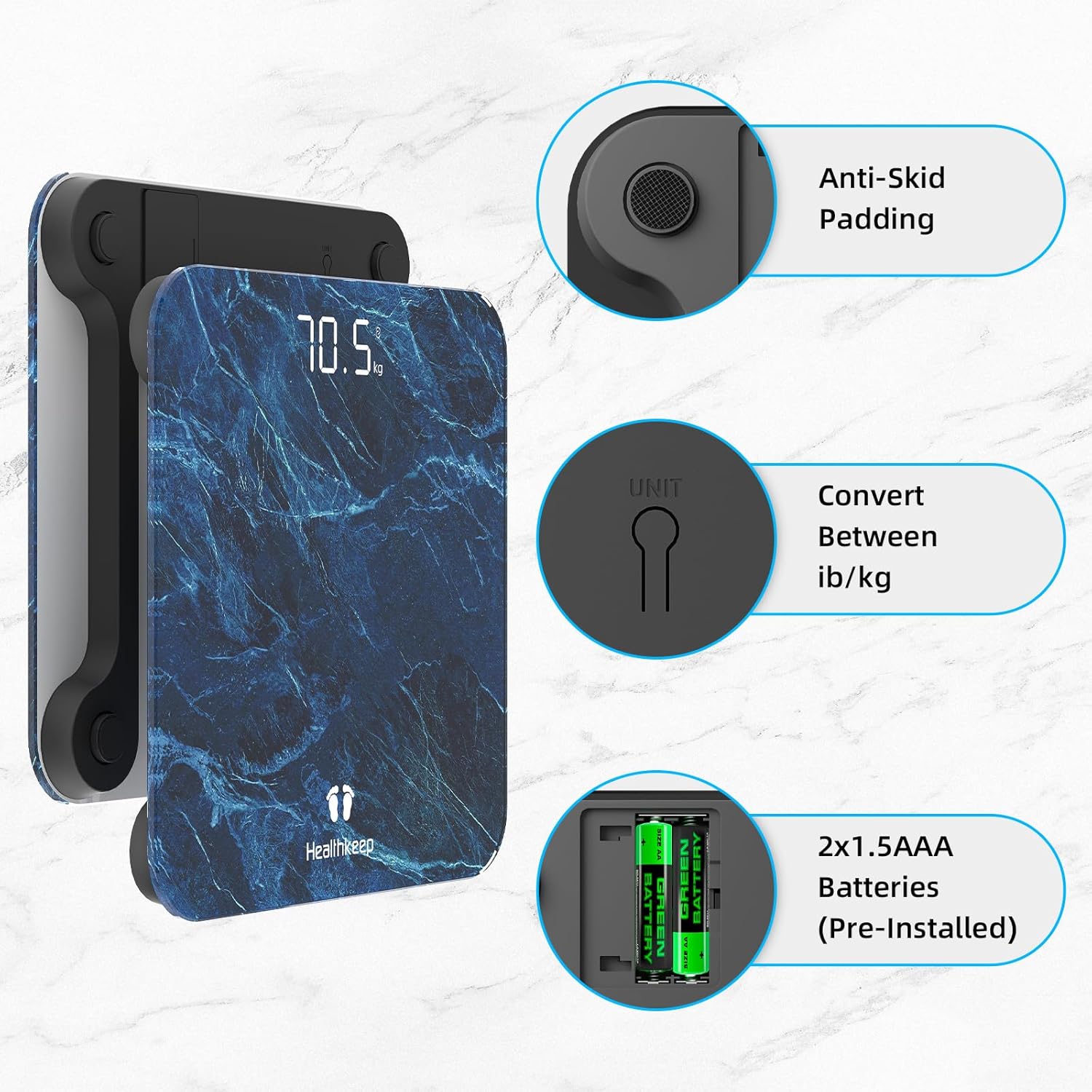 Healthkeep High Precision Digital Bathroom Scale with Step-On Technology LED Display Slim Design Max 180kg/400lb Marble Blue