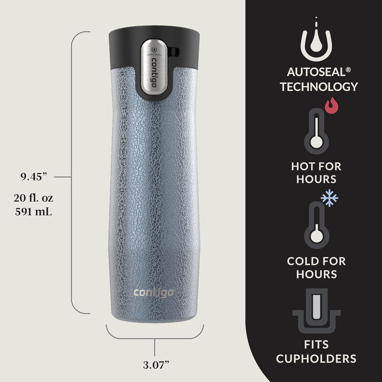 Contigo® AUTOSEAL® West Loop Vacuum-Insulated Stainless Steel Travel Mug with Easy-Clean Lid, 20 oz, 2 pack, Crystal Lakeside; Crystal Agave