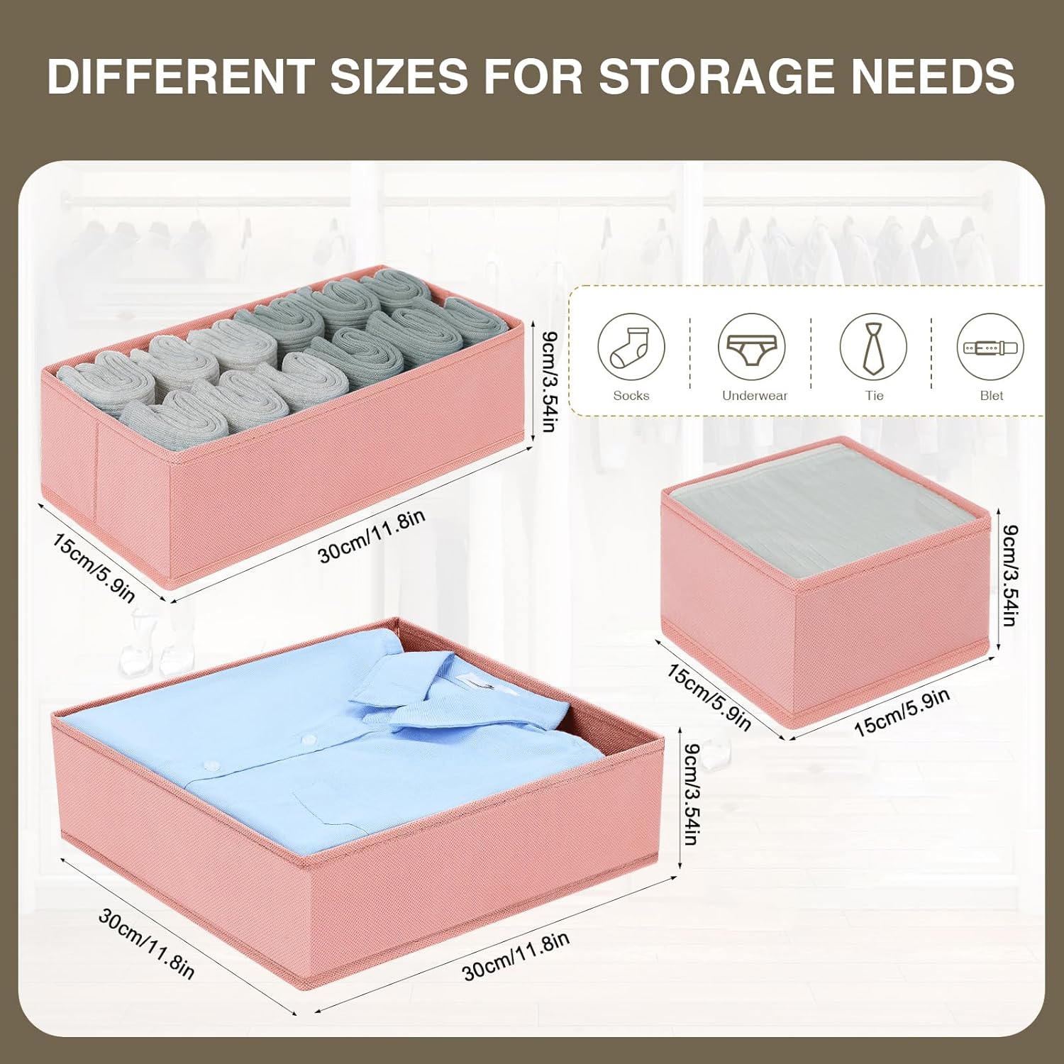 DIMJ Fabric Drawer Organizer Bins - 12 Pack Foldable Sock & Clothes Organizer - Pink