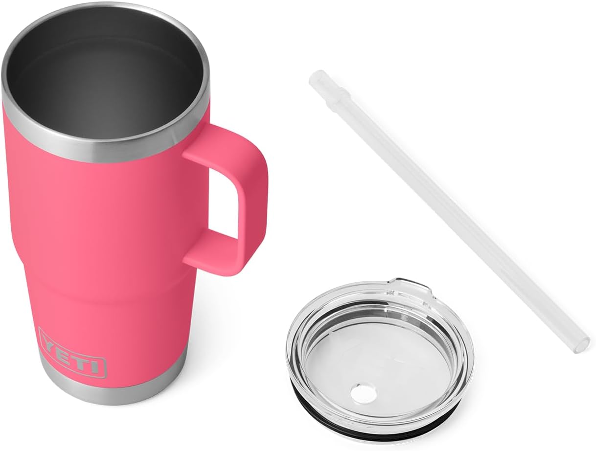 YETI Rambler 25 oz Tumbler with Handle and Straw Lid, Travel Mug Water Tumbler, Vacuum Insulated Cup with Handle, Stainless Steel, Tropical Pink
