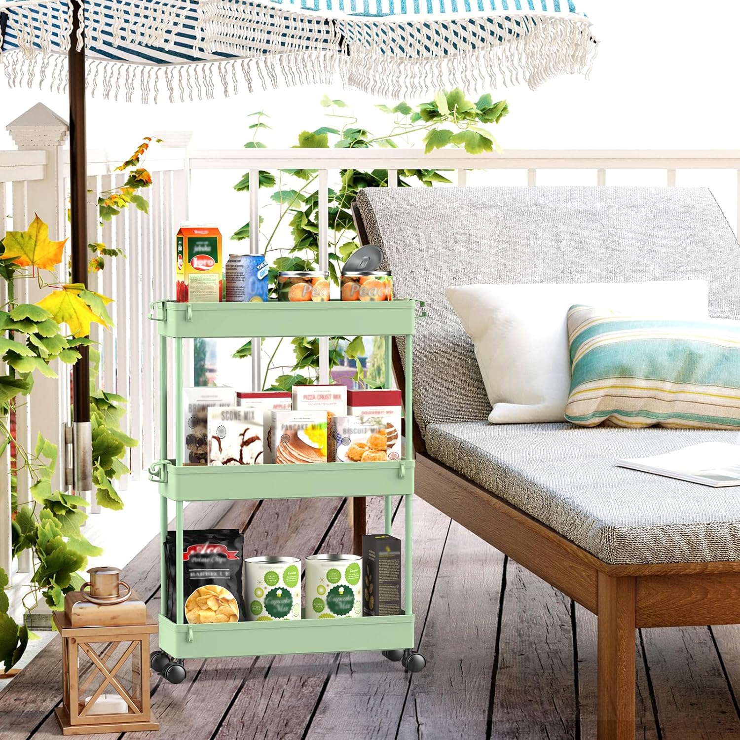• [Flexible 3-Tier Storage Cart with Removable Shelves] This slim rolling cart features 3 removable shelves, allowing you to customize the storage layout as needed—use 3 tiers for maximum capacity. Its slim feature make it easily fit in narrow spaces in your home. Ideal for bathrooms, kitchen, garage, closet, laundry rooms, offices or between appliances.