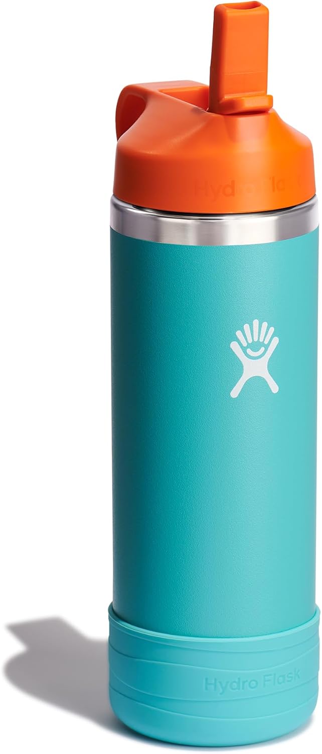 - 18 OZ KIDS SEASPRAY BLUE WATER BOTTLE: The Hydro Flask Kids 18 oz vacuum insulated stainless steel water bottle keeps drinks cold for up to 24 hours. With a colorful, easy-to-clean Straw Cap and cute Bottle Boot, it’s the perfect kids water bottle. Ages 3+.