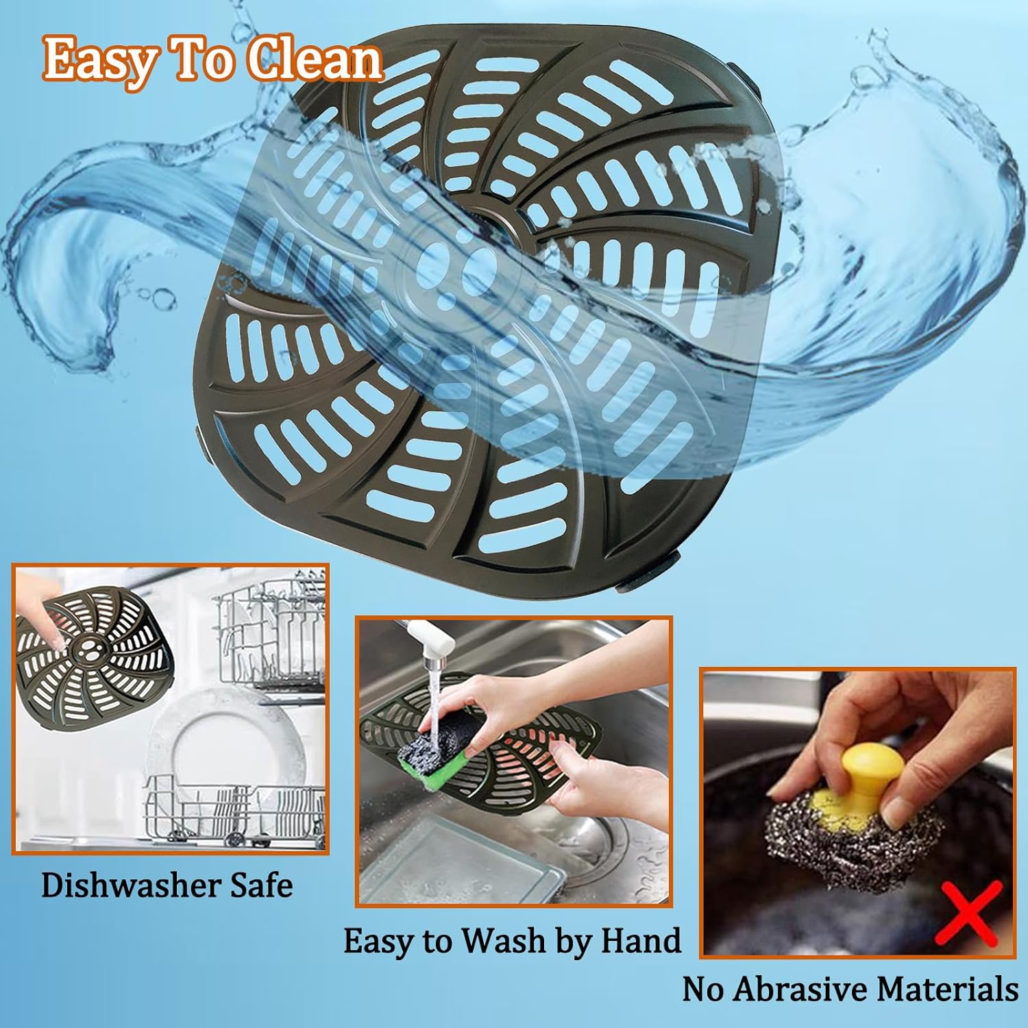 - Package Includes: 1×Air fryer accessory grill pan, Gifts: 4×Air fryer silicone rubber feet, 1× Kitchen non-stick cleaning cloth.