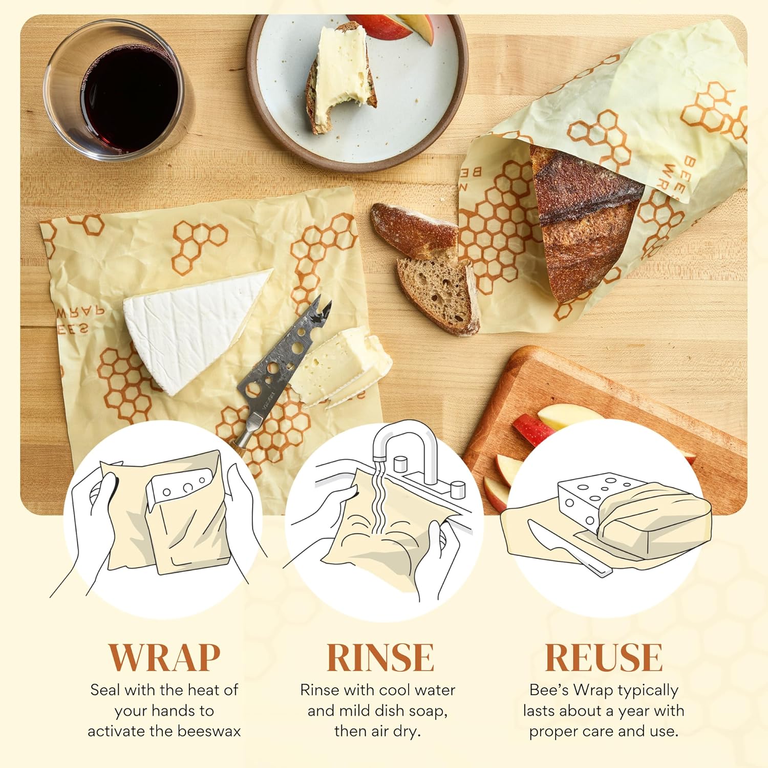 - MULTIPLE SIZES for all your kitchen storage solutions. Use the small wrap for fruit or small snacks, the medium as a sandwich wrap or cheese storage, the large wrap as reusable produce bags or bowl covers, and the bread wrap to store fresh homemade bread.