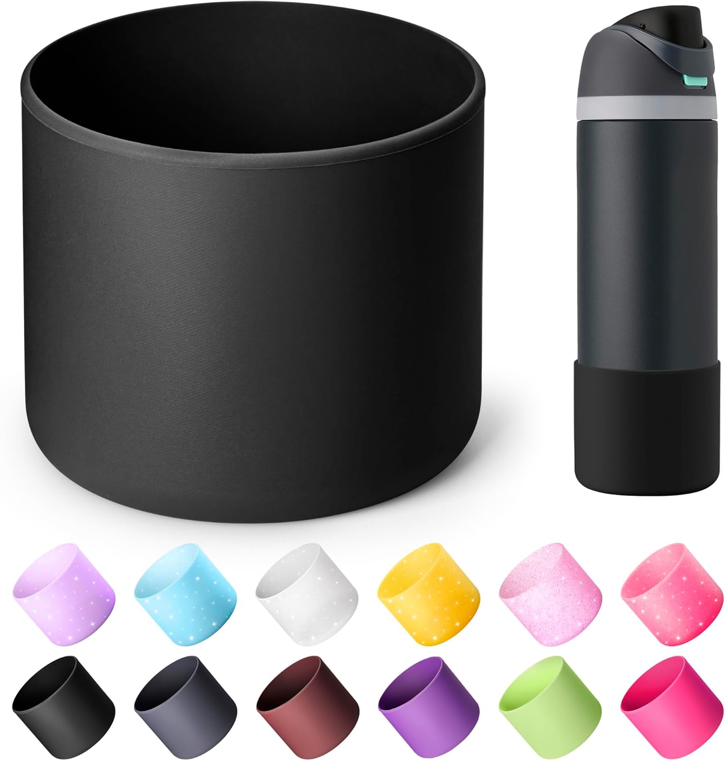 - COMPATIBILITY: Silicone sleeve fit for Owala 24oz Twist/Free Sip/Flip stainless steel water bottles. Also fit for Owala 40oz tumblers. Fits other brand water bottle which bottom diameter is from 2.85inch to 2.95inch. NOT intended for use with tritan plastic water bottles.