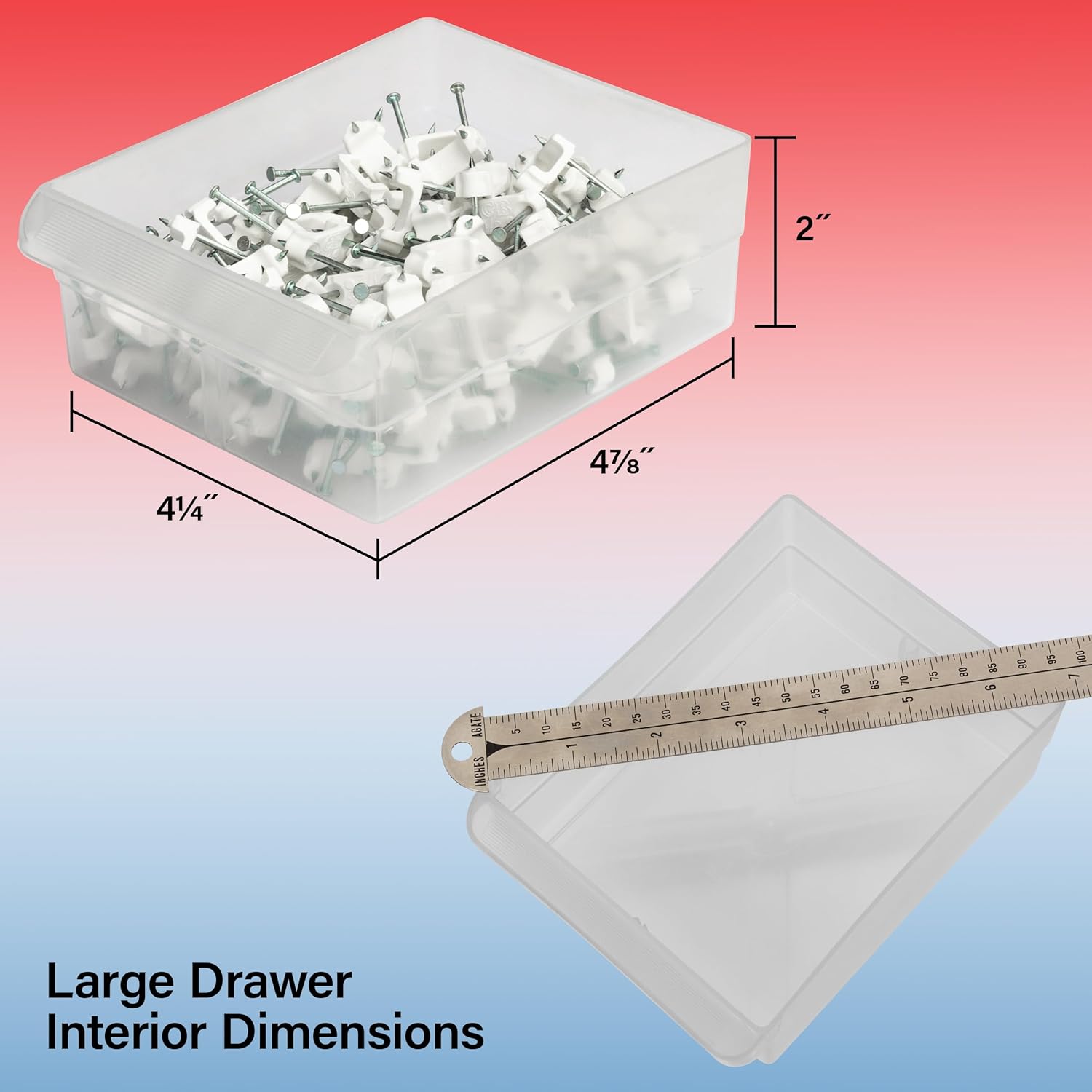 - DIVIDERS & MORE FEATURES: Drawer dividers are included and molded into the back of the cabinet; Stack cabinets securely or use keyhole slots to for wall mounting; Finger-grip drawer pulls provide easy access; Rear stop tabs prevent contents from spilling