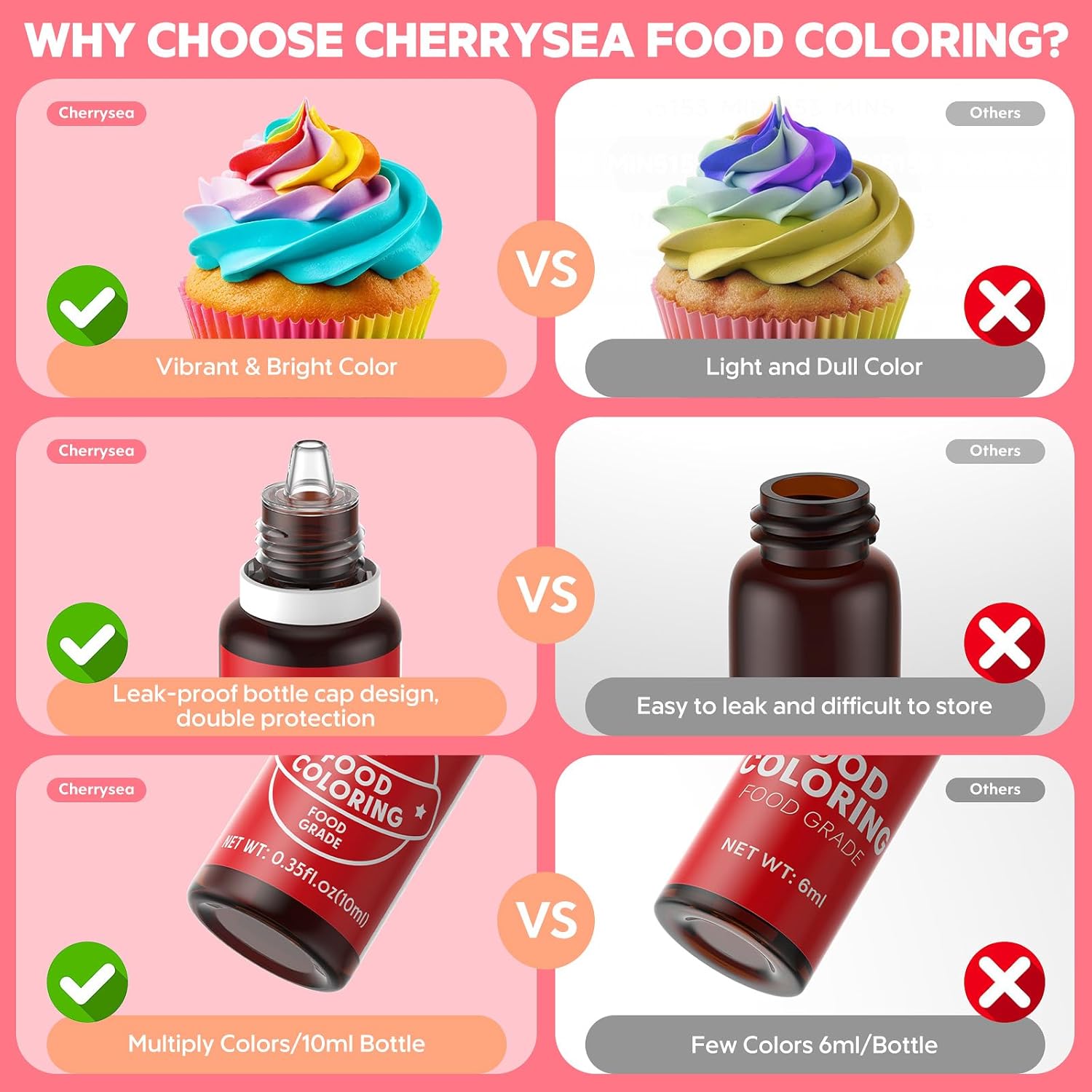 Food Coloring for Baking - Cherrysea 26 Vibrant Cake Coloring Liquid Set for Dessert Decorating, Food Grade Food Dye for Icing,Fondant,Cookies,Easter Egg,Making DIY Supplies Kit- 0.35 Fl. oz/Bottles