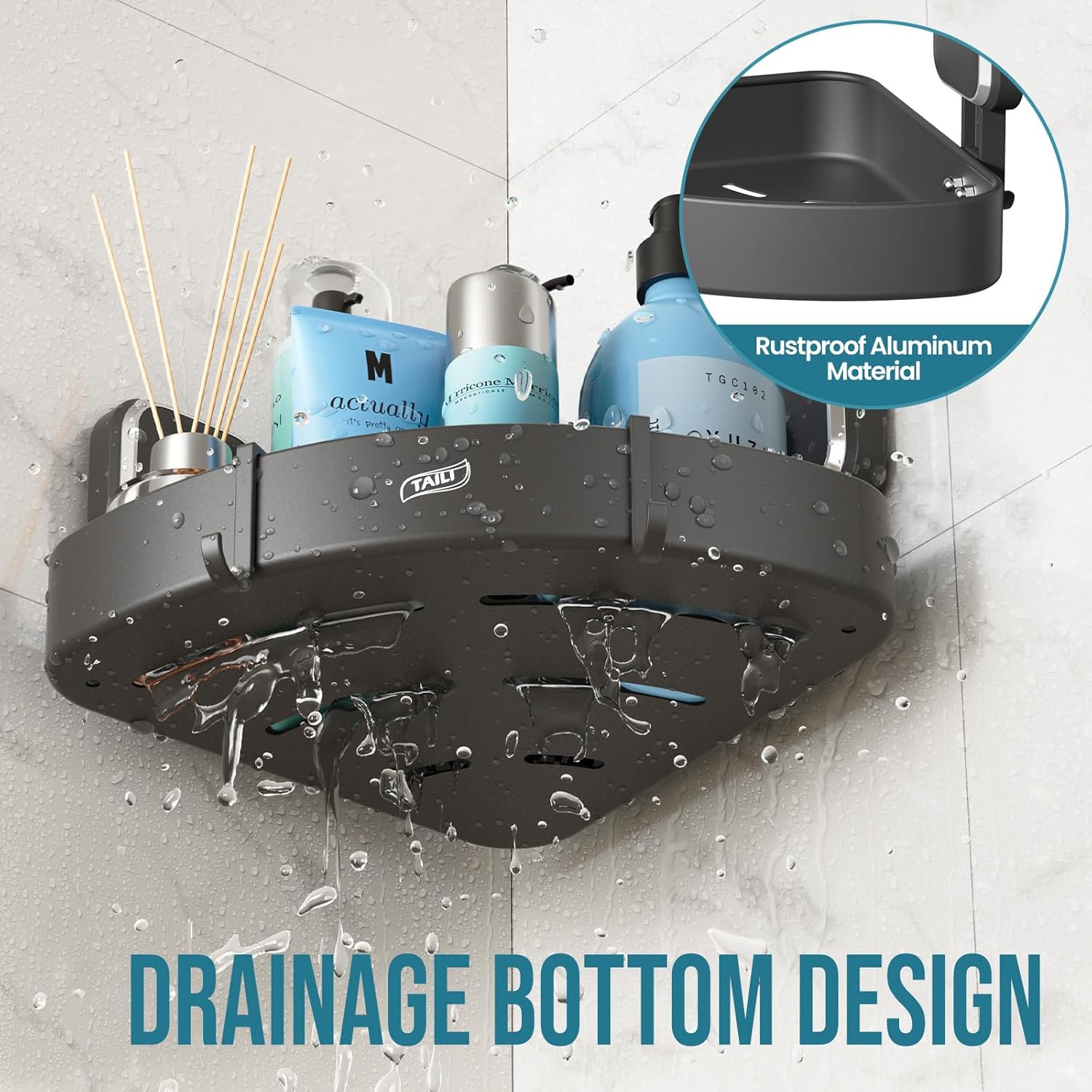 - DURABILITY & HIGH-QUALITY MATERIAL: This shower corner caddy is made of high-quality aluminum and rustproof. With drainage holes in the bottom of corner shower shelf for inside shower, water will be dripping away completely, keep your bath products clean and dry